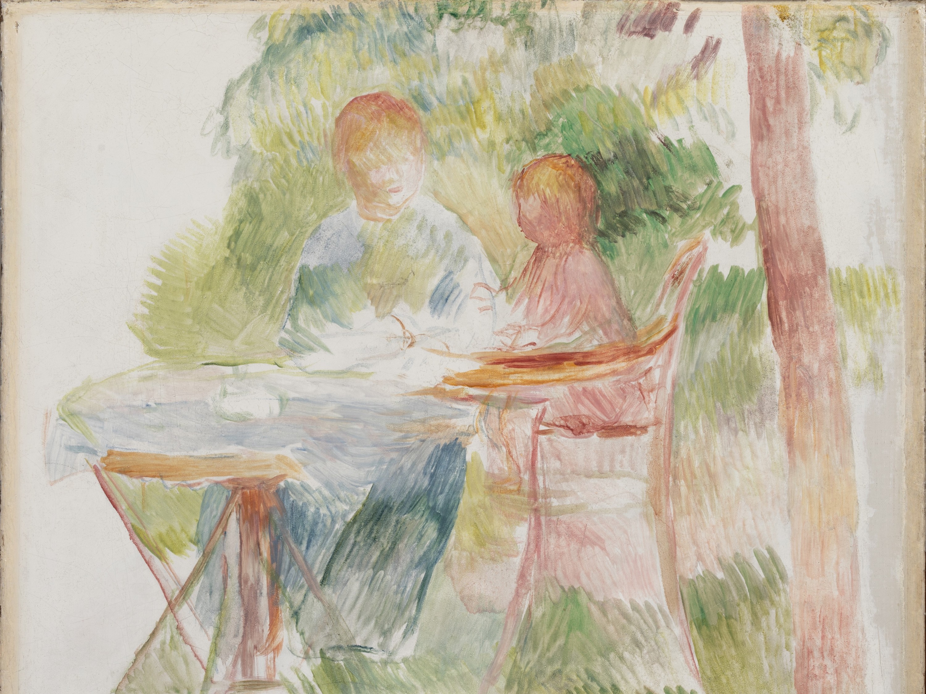 A 1885 Renoir painting of his wife Aline and their son Pierre in a garden.