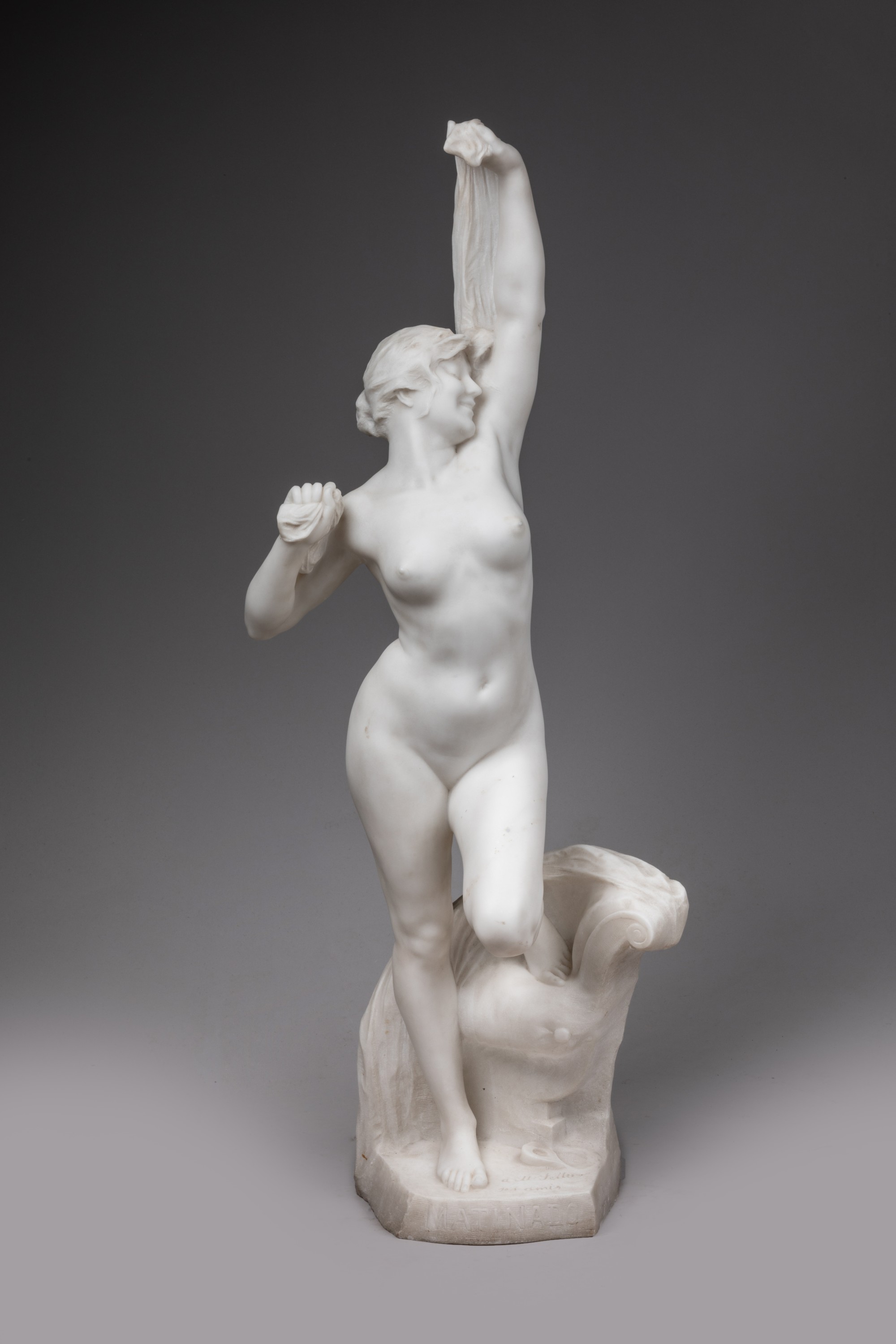 Présentée au Salon de 1907, le plâtre de "Bello Matinado" (Belle matinée en italien) est acquis par l'État. Le marbre rejoint le musée du Louvre et est aujourd'hui exposé au musée des Beaux-Arts d'Arras. Un autre marbre de même grandeur est conservé au musée des Beaux-Arts de Rio de Janeiro (Brésil). La tradition familiale rapporte que le modèle était proche d'Eugène Fettu, maire radical de Combres, conseiller-général d'Eure-et-Loir de 1910 à 1940, par ailleurs conseiller du commerce extérieur de la France. Cela explique le banquet donné en son honneur par ses amis lors de la réception de cet exemplaire et le dépôt du plâtre original à proximité de ses terres électorales, au Musée des Beaux-Arts et d'Histoire de Châteaudun. La qualité d'exécution et de conservation immaculée de cette sculpture, ainsi que sa provenance, en font l'exemplaire le plus séduisant parmi tous ceux référencés.
