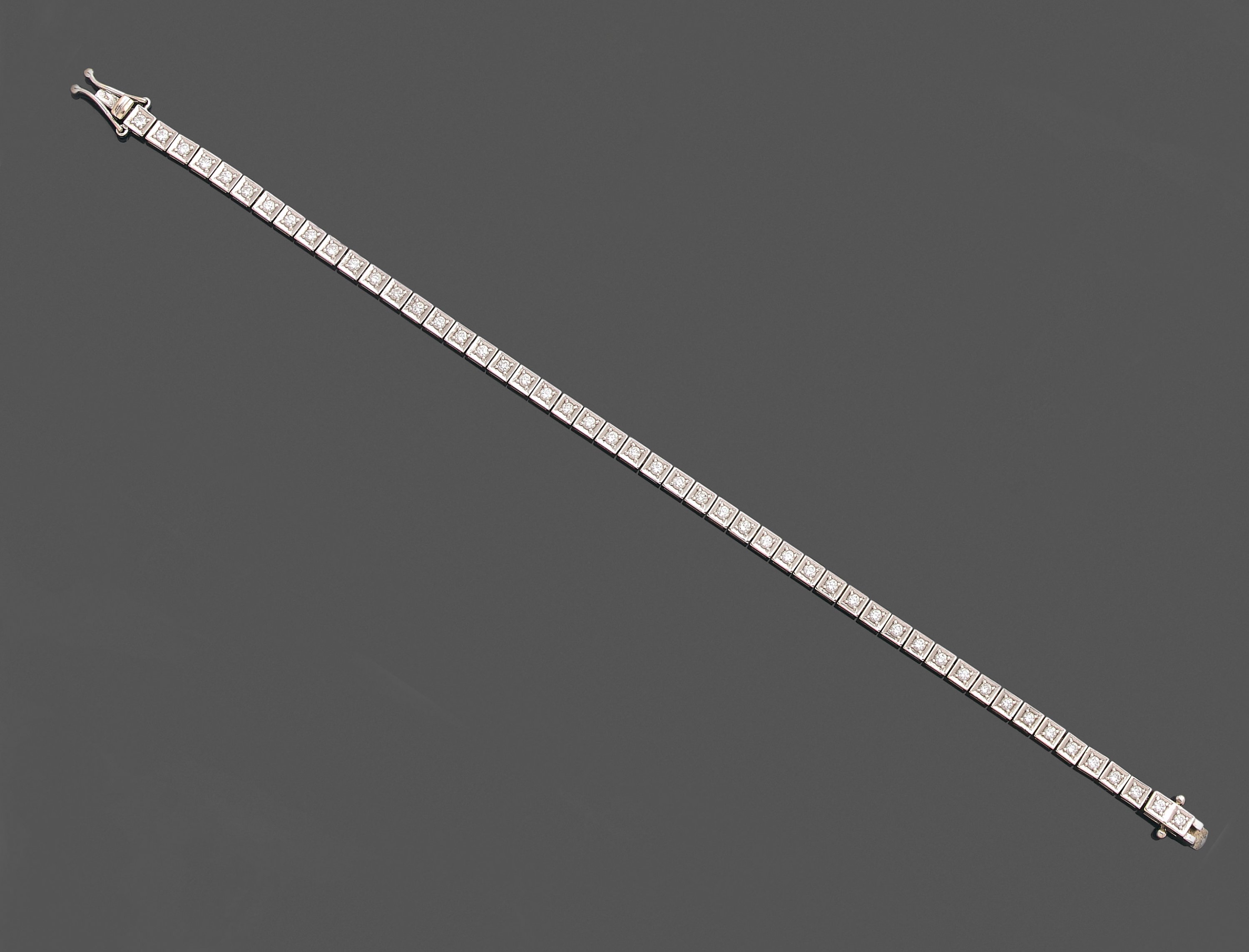en or gris 750 millièmes, entièrement serti d'une ligne de quarante-neuf diamants ronds de taille brillant.