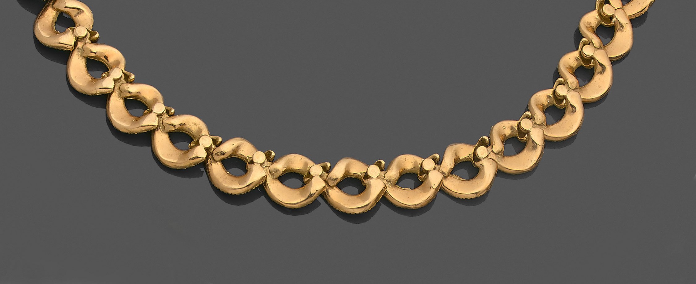COLLIER ARTICULÉ en or jaune 750 millièmes, les maillons entrelacés...