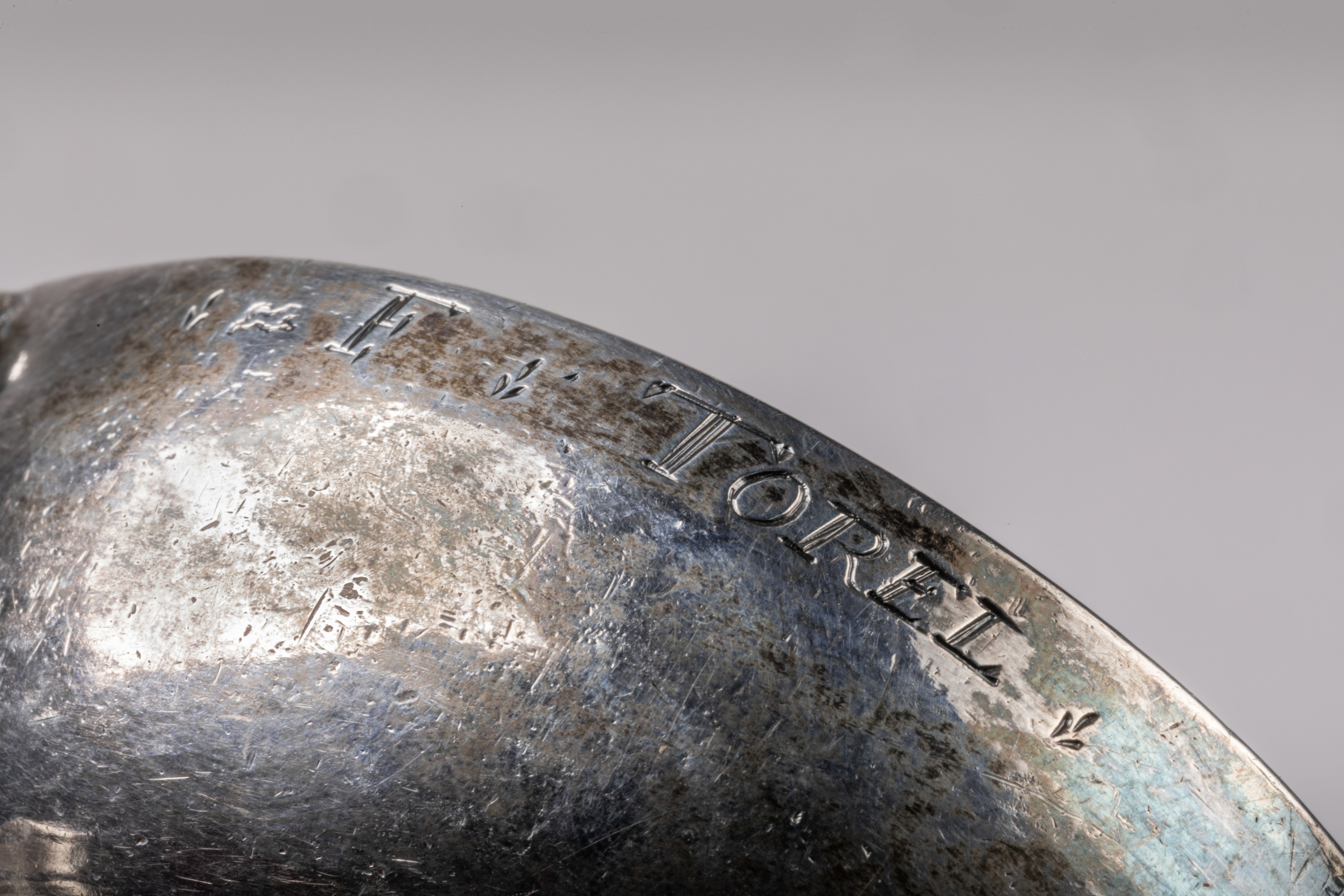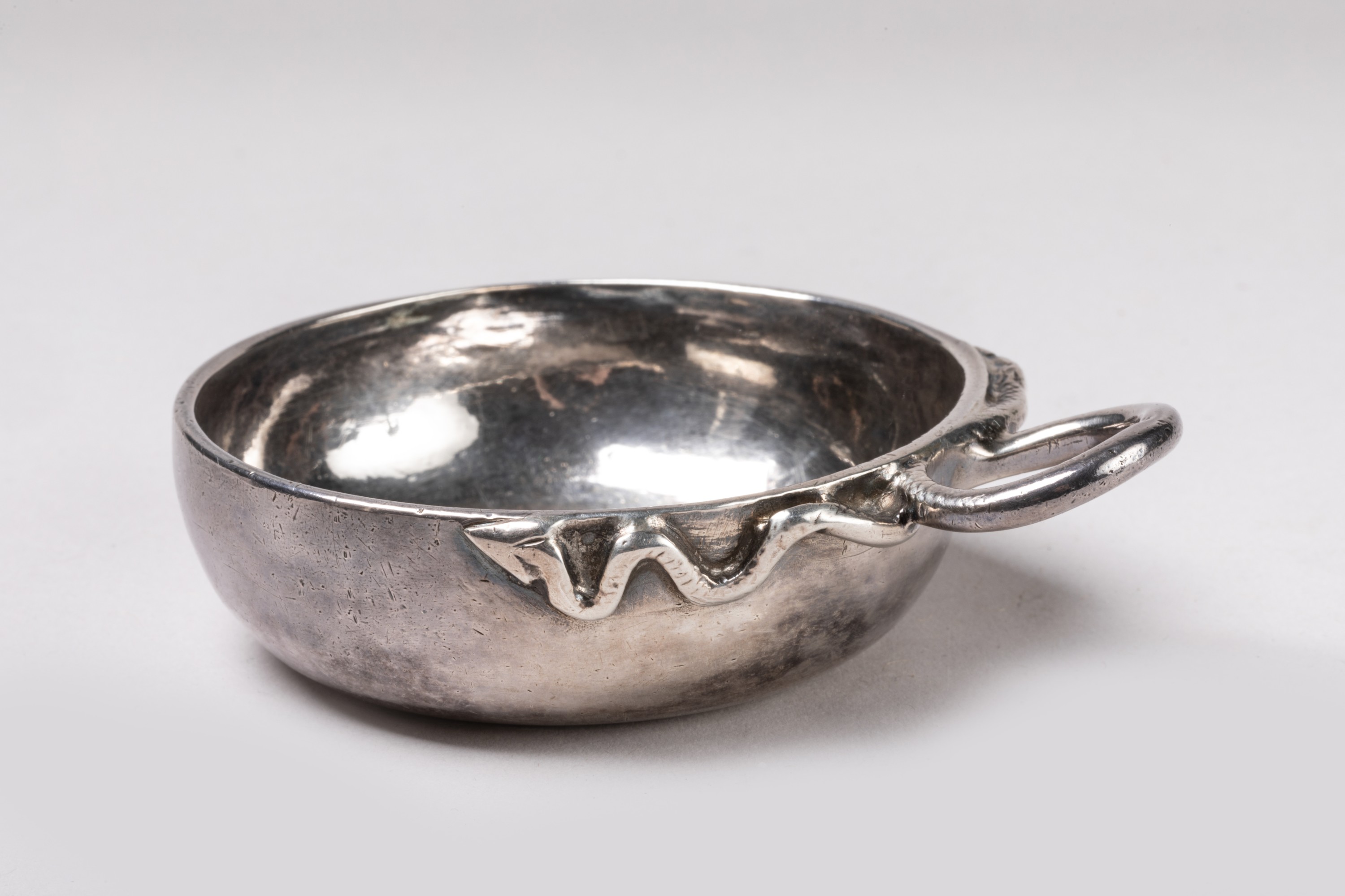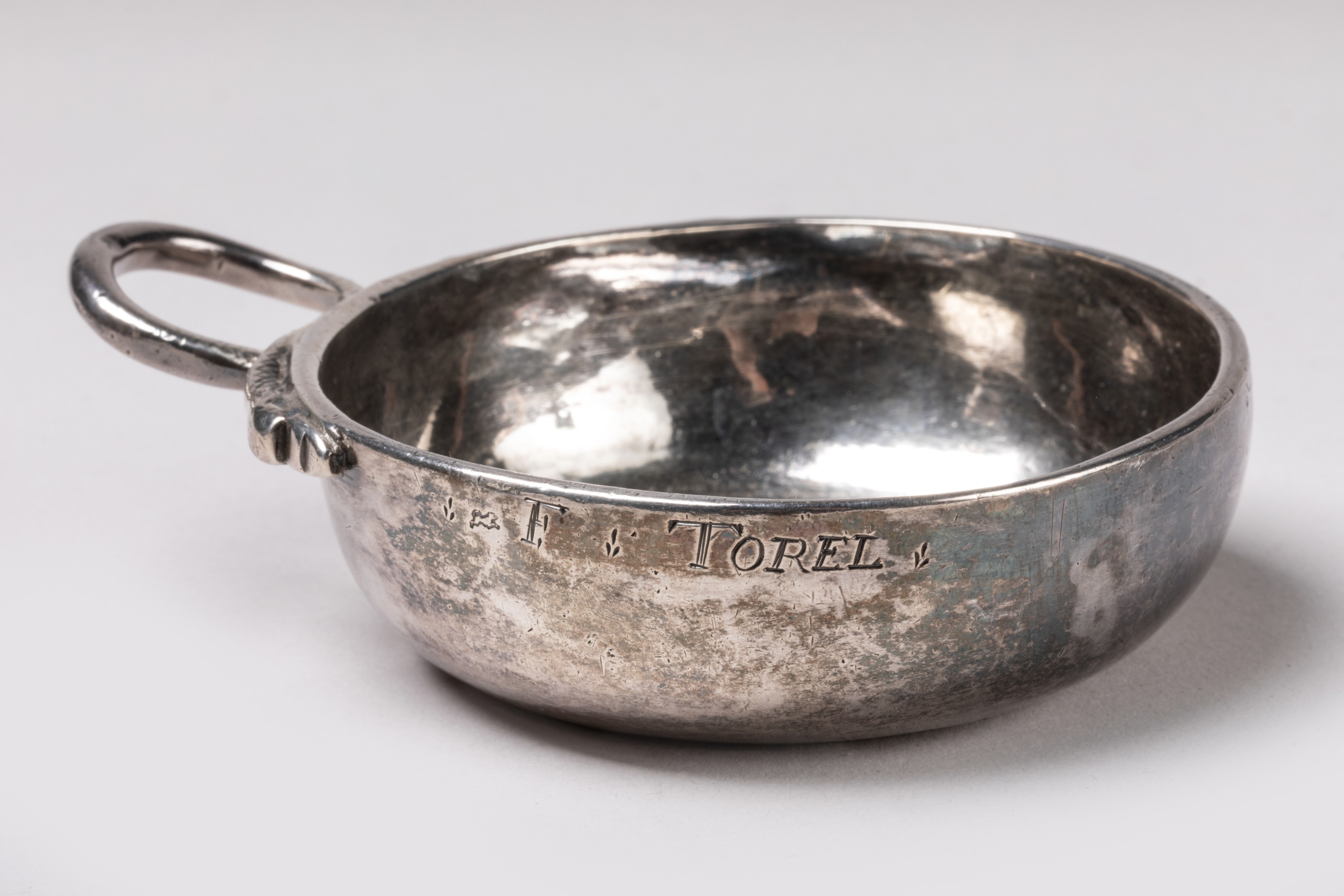 en argent uni. Anse en forme de serpent. Inscription gravée sur le bord: "F. TORELl".