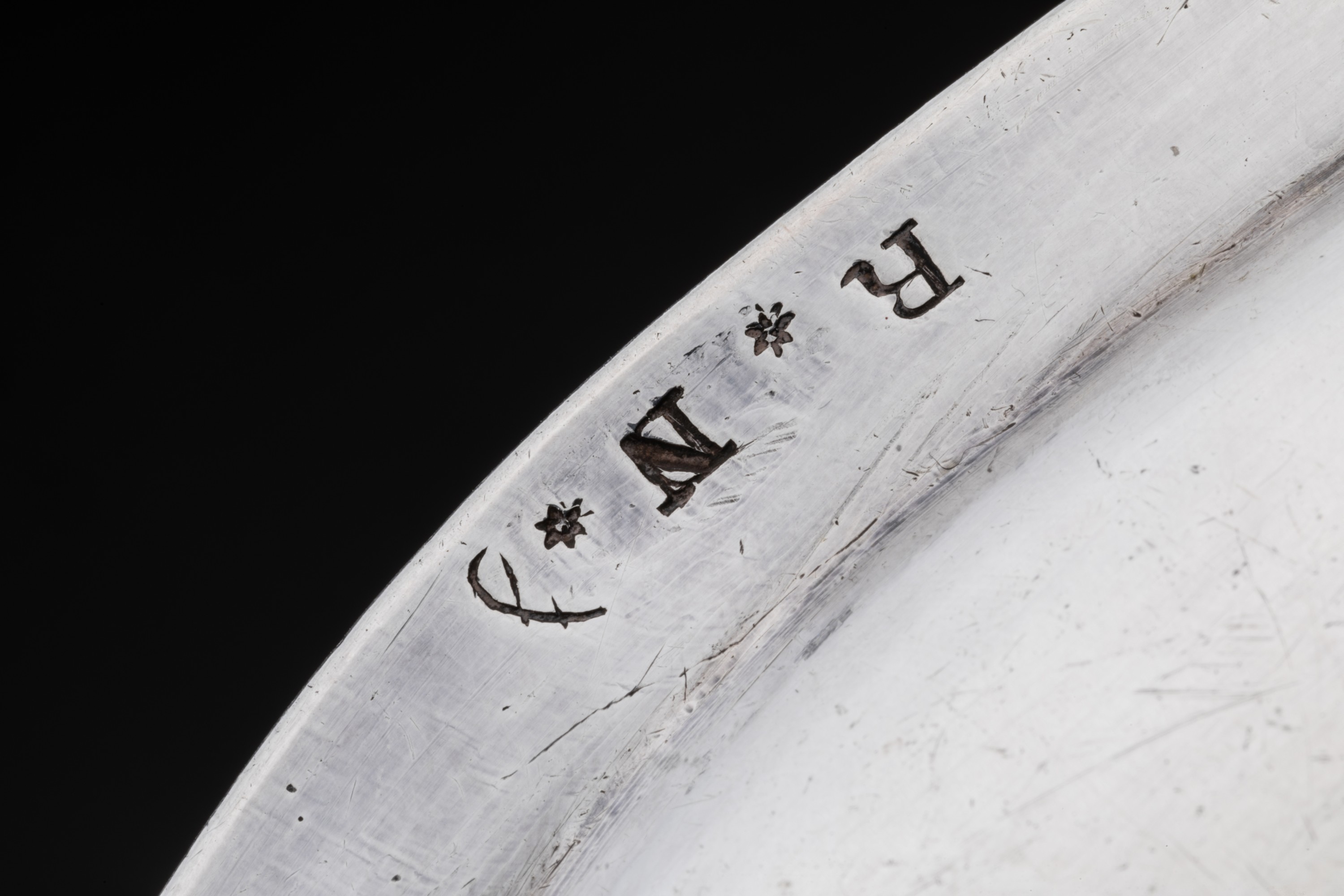 en argent de forme ovale, à marli de style Louis XV, et bords à contours rentrés.