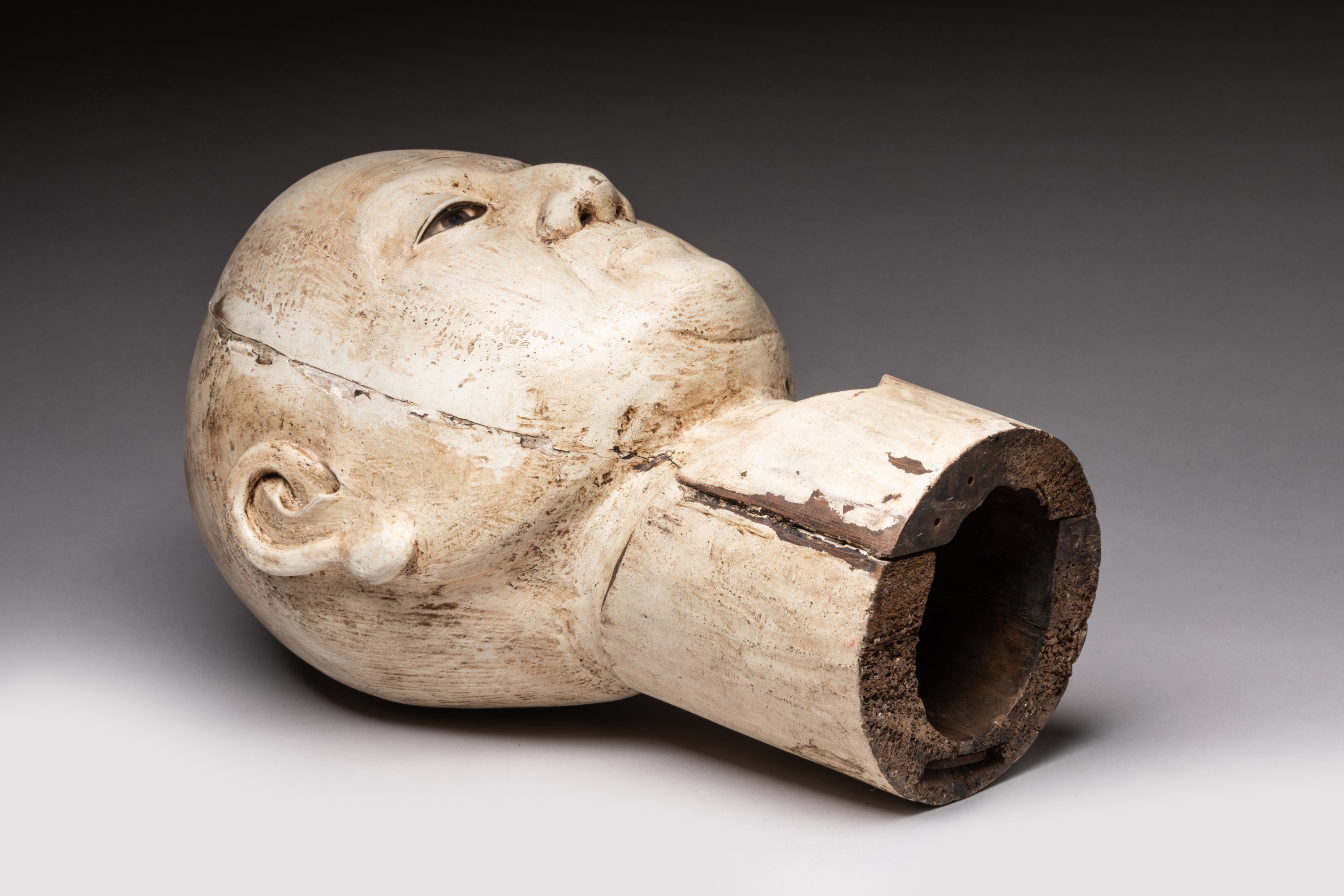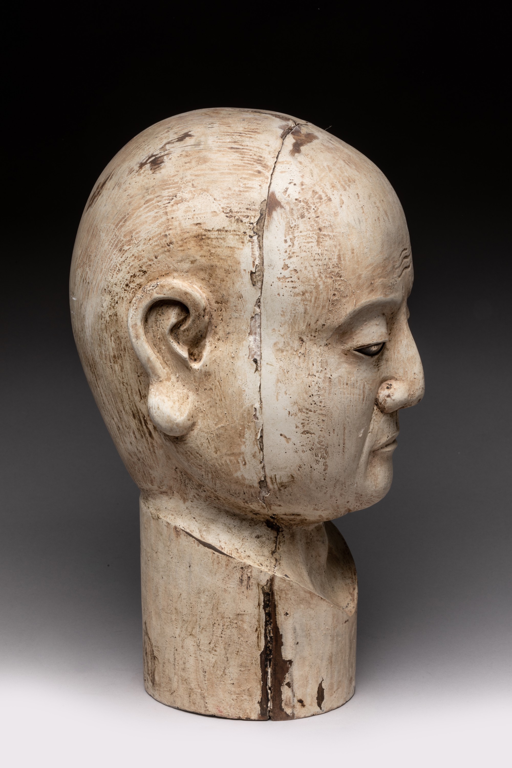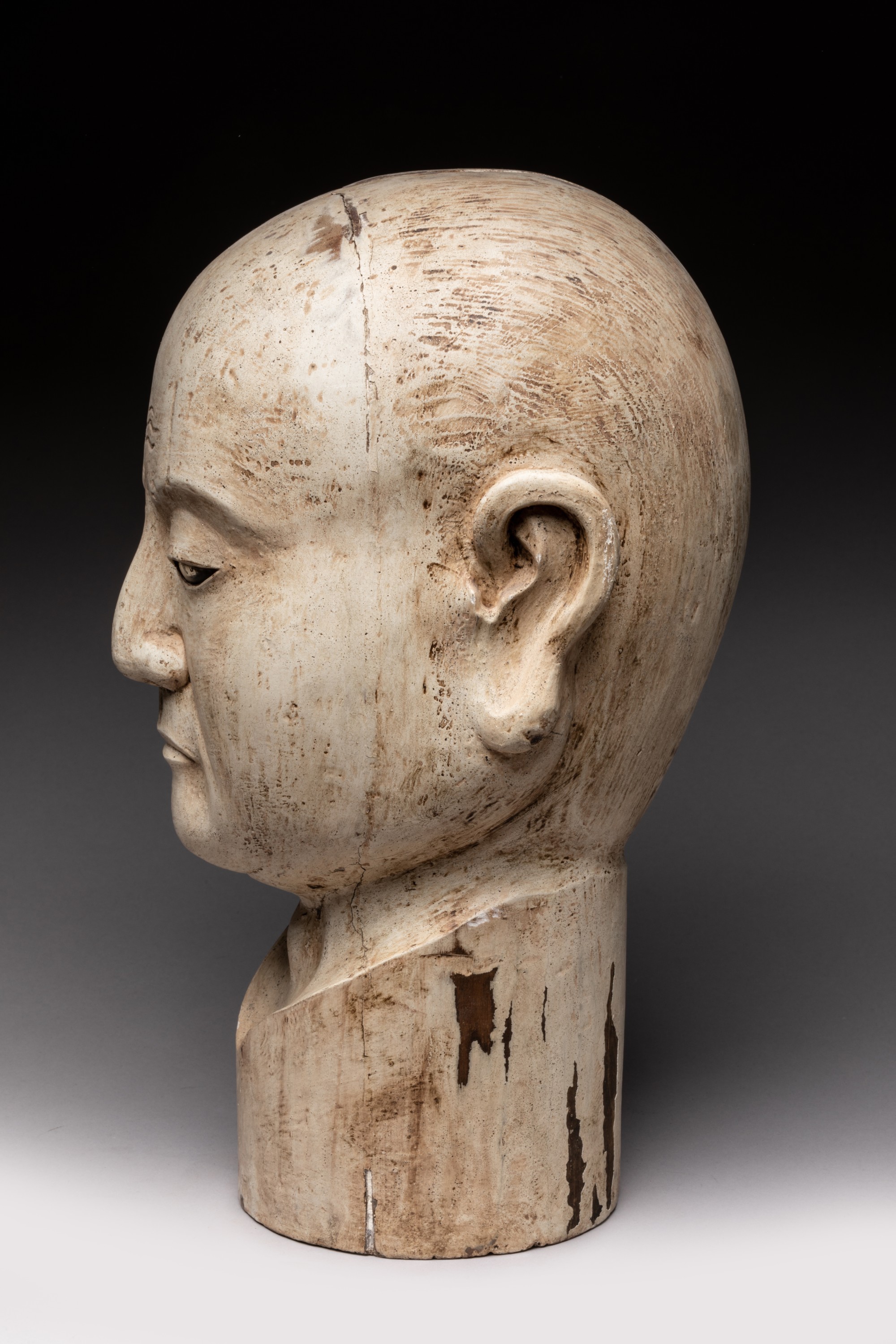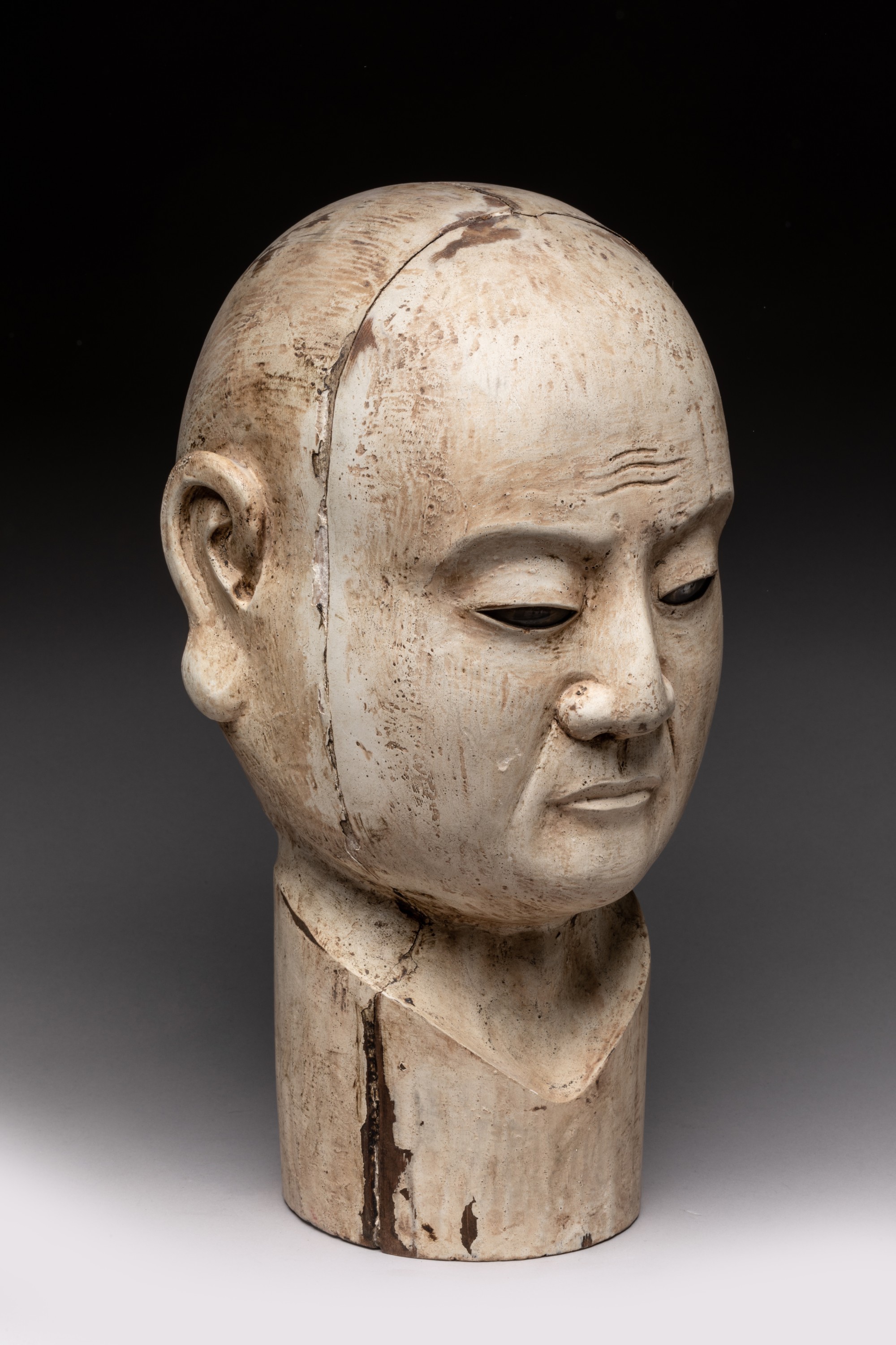 Kamakura period lacquered cypress monk's head, rock crystal eyes. Japan, 13th century.