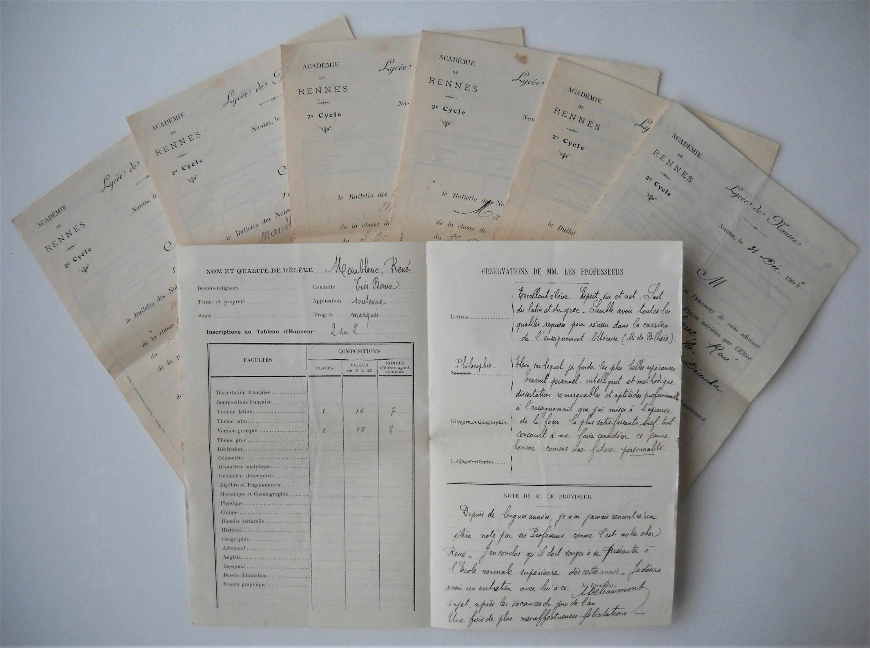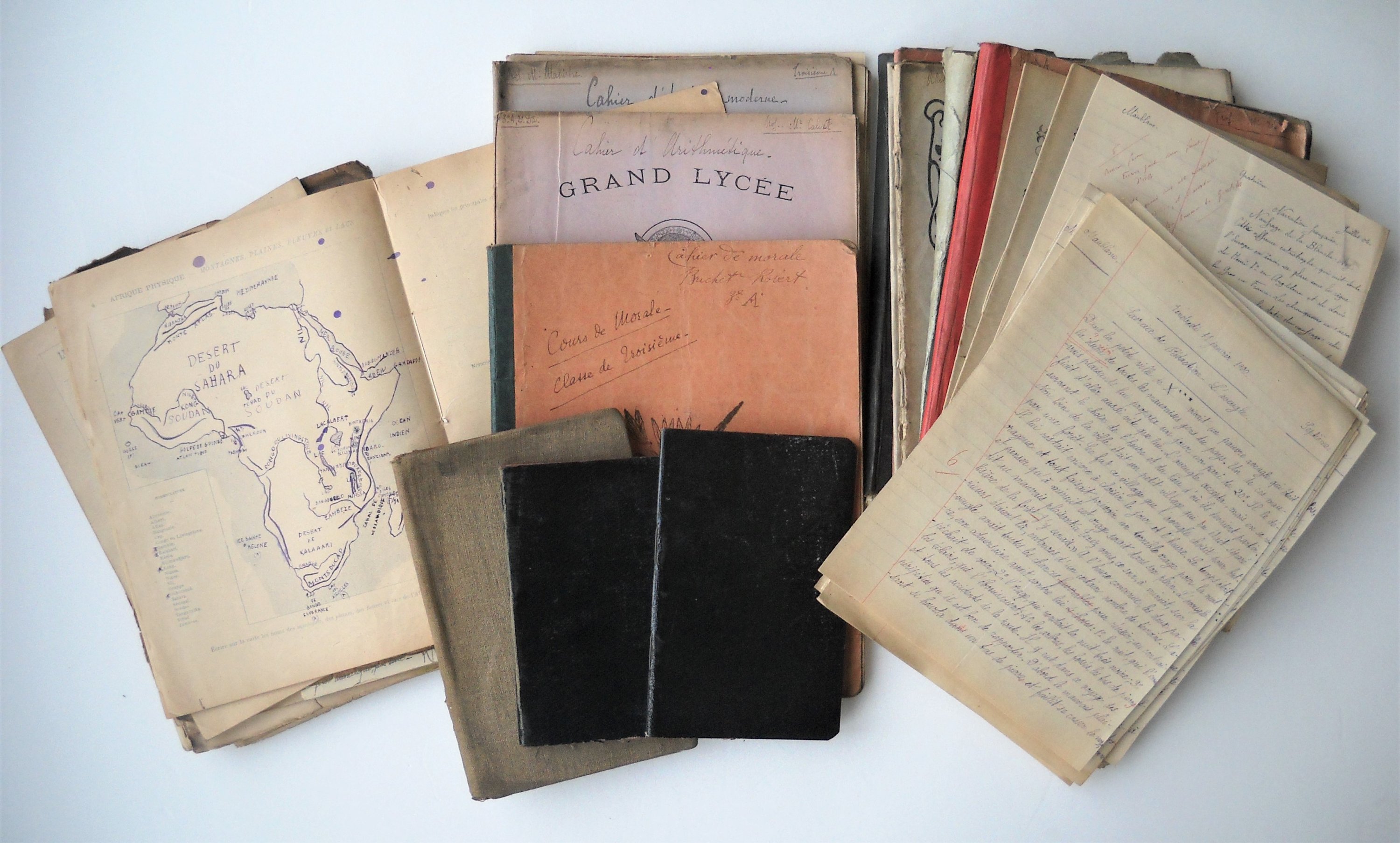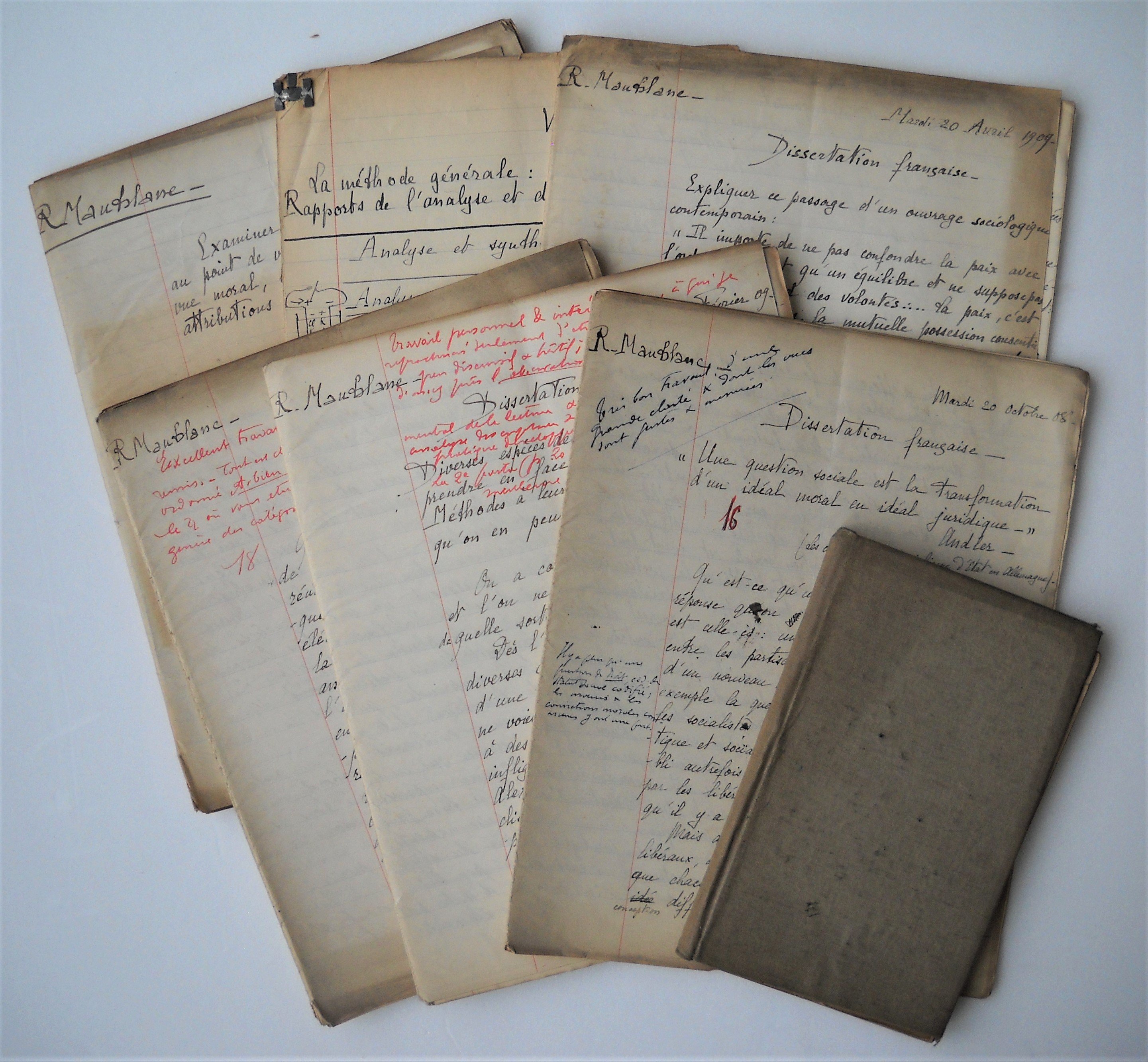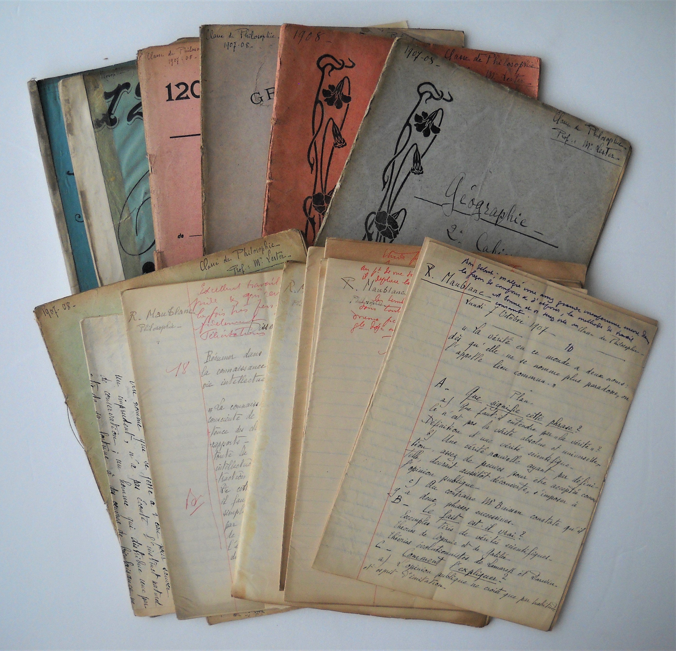 - Cahiers de cours et feuillets d'exercices manuscrits, rédigés par René Maublanc, élève de la 8e jusqu'à la 1ère Supérieure ;