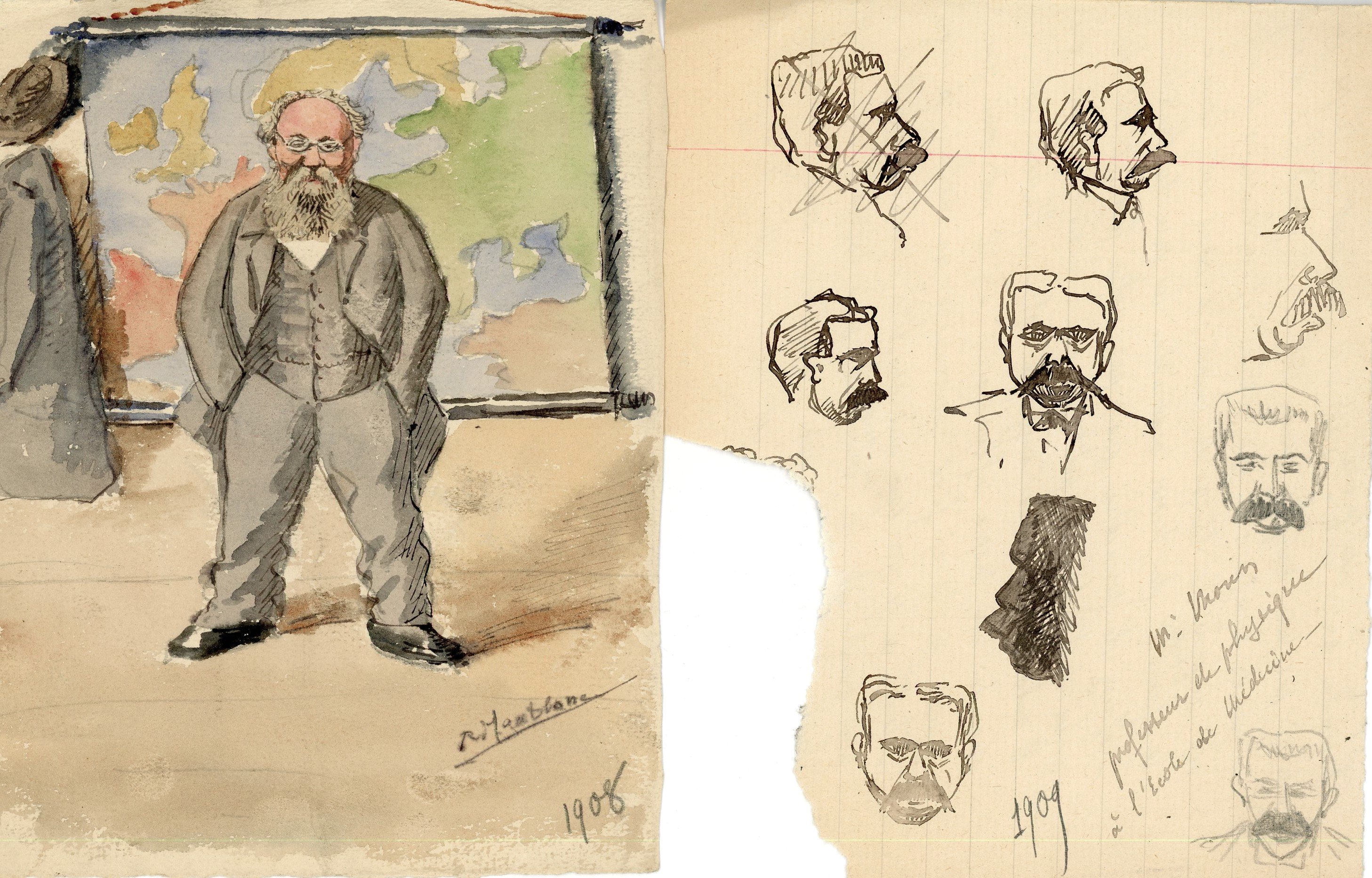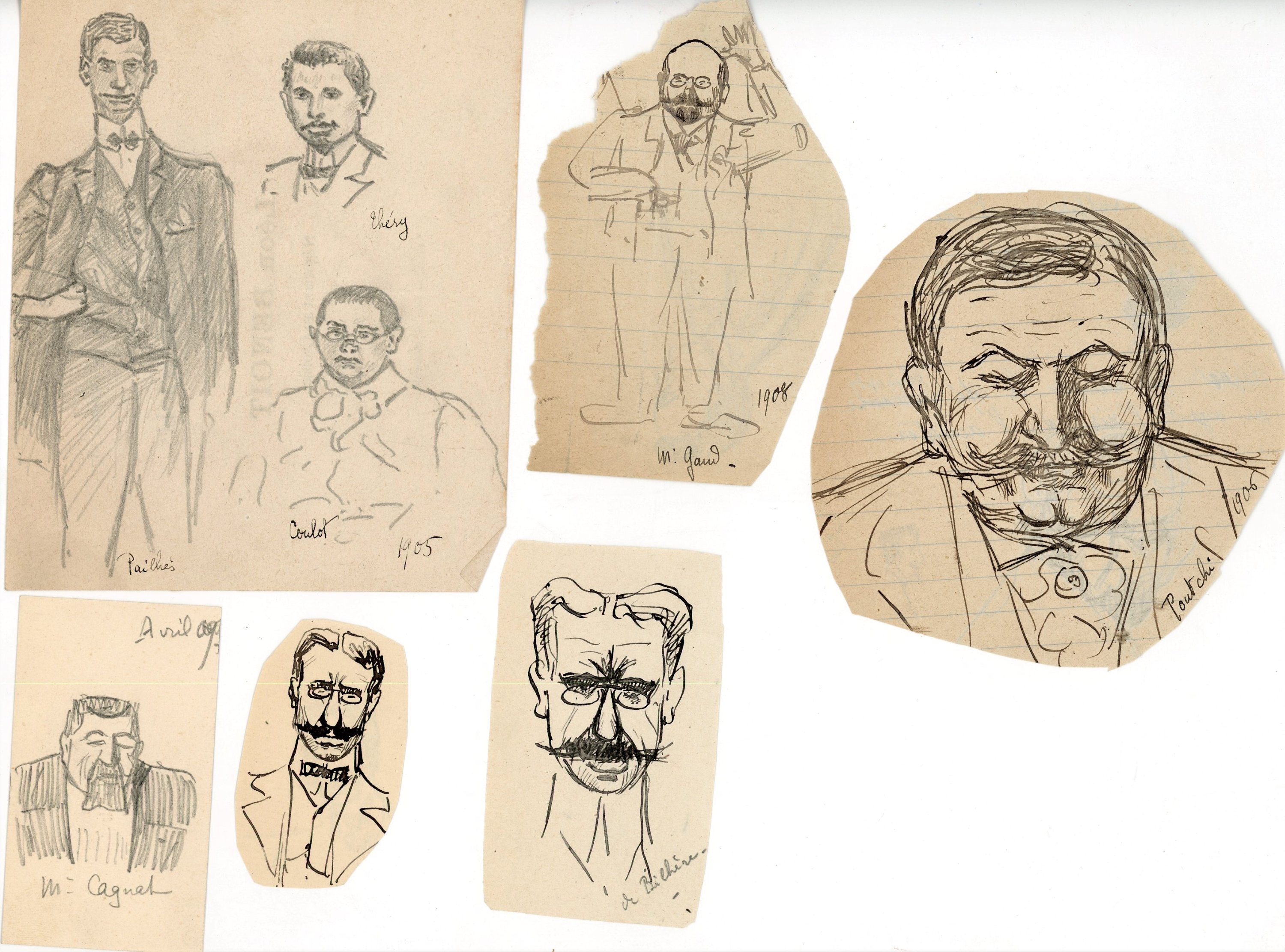 - Environ 30 petits croquis de R.M., professeurs et élèves entre 1905 et 1909.