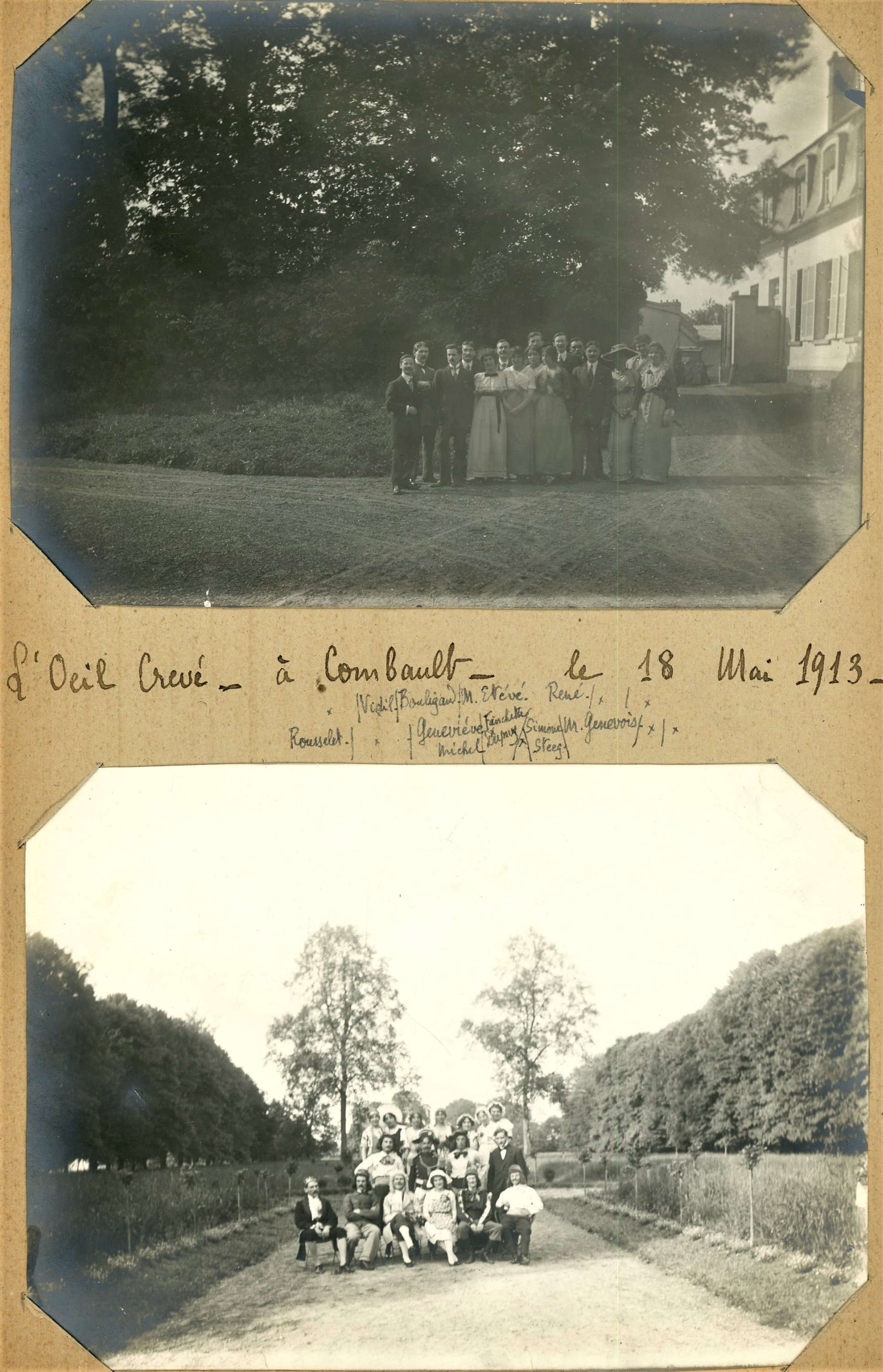 - 10 photos de groupes d'élèves de 1913 (sortie à Combault, l'Oeil Crevé, le quadrille français avec le père Fisher) ;