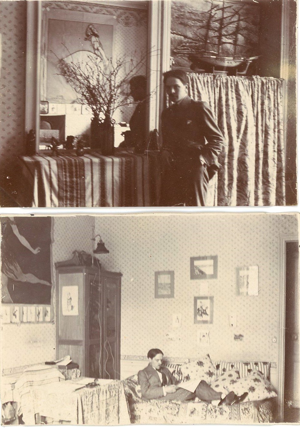 - 6 petites photos dont 2 vues prises dans l'appartement des Garreta 29 avenue Rapp en mai 1913, et 2 photos envoyées du front+ cartes photos envoyées du camp de Lisieux, 1915.