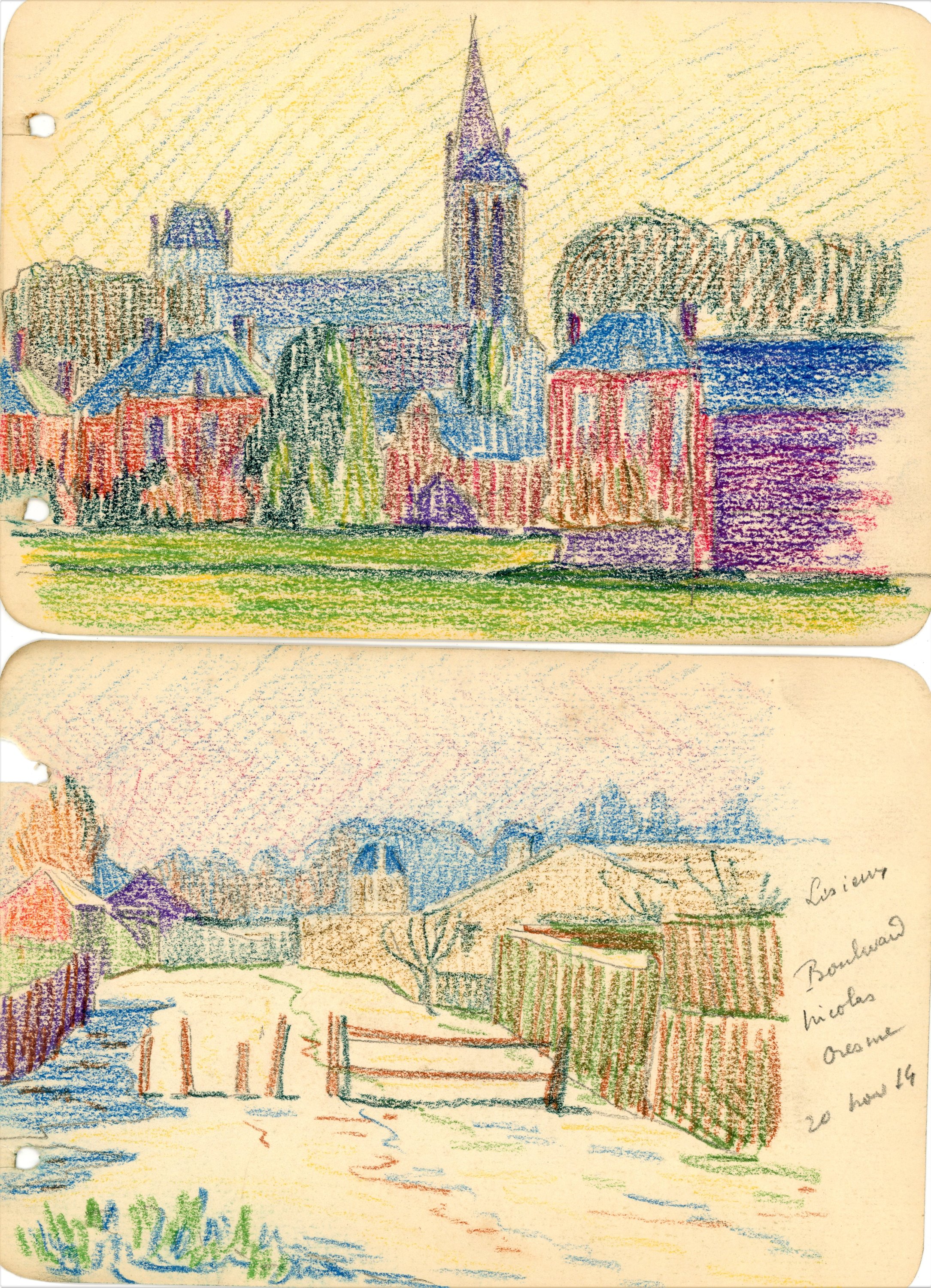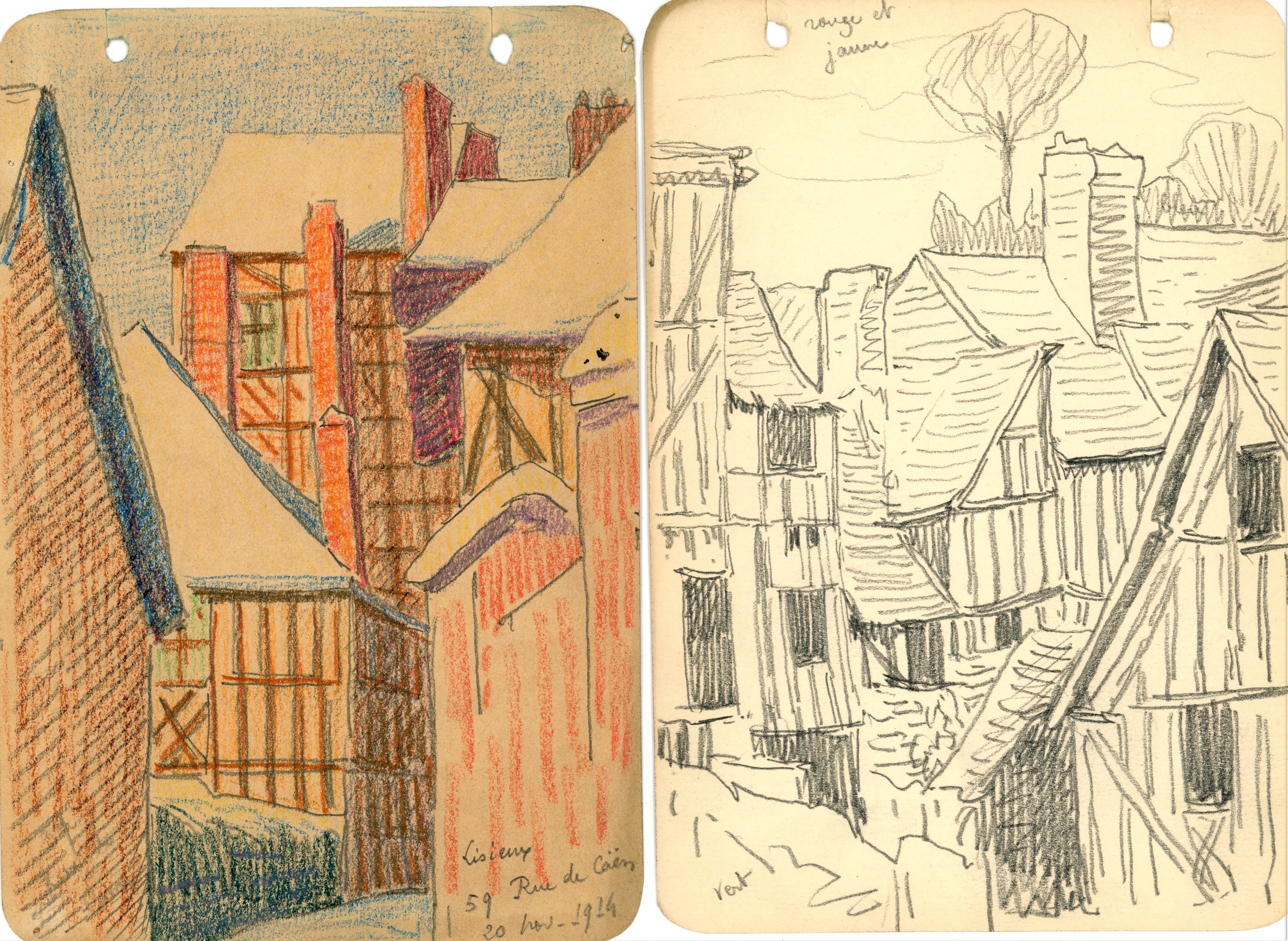 - 10 croquis au crayon par R.M. lors de sa visite à Lisieux en novembre 1914 (portraits de Pierre Garreta, André Simon, vue de Lisieux.) ;