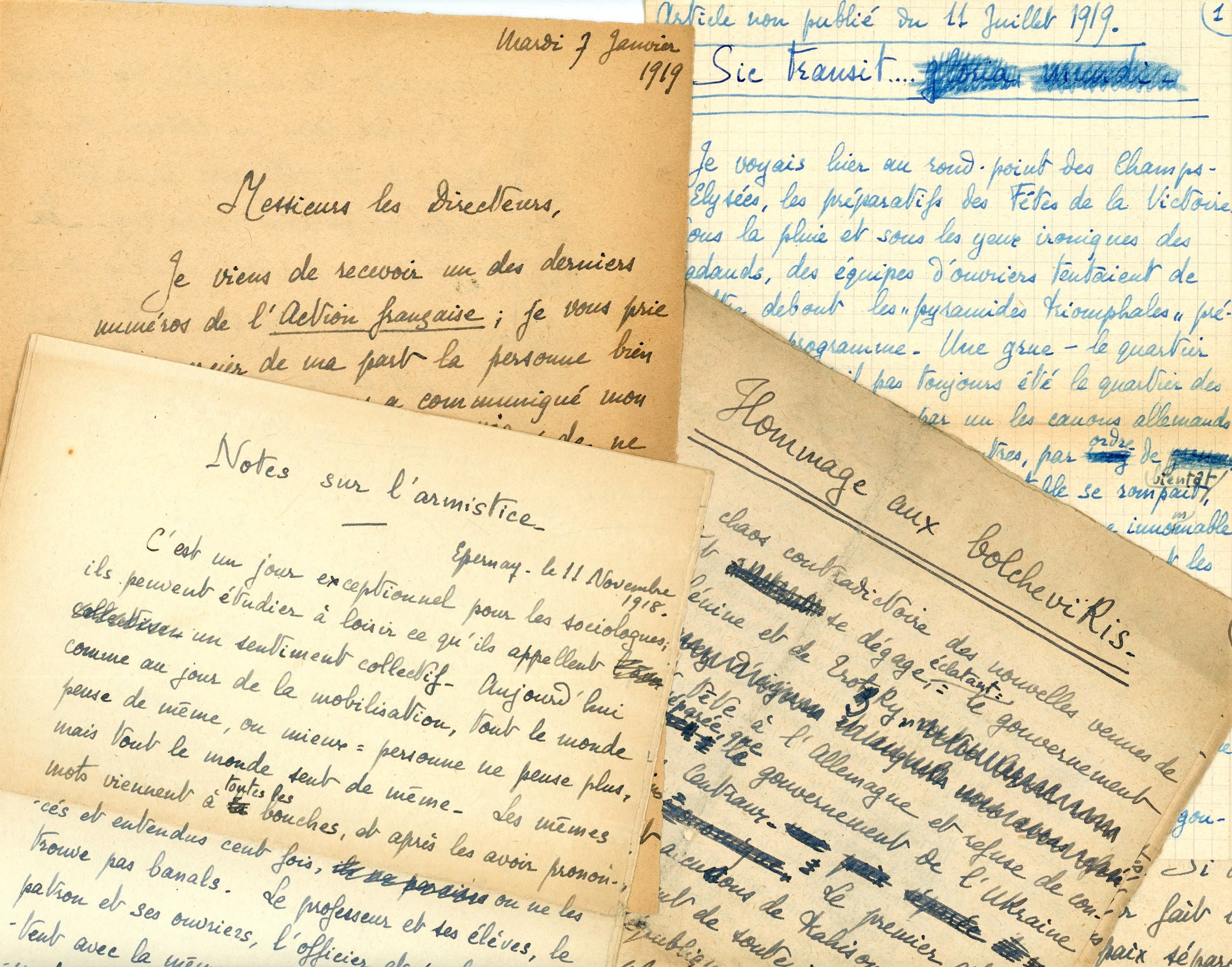 - Brouillon de lettre adressée aux directeurs de lAction française, 7 janvier 1919, 2 pages in-12 ;