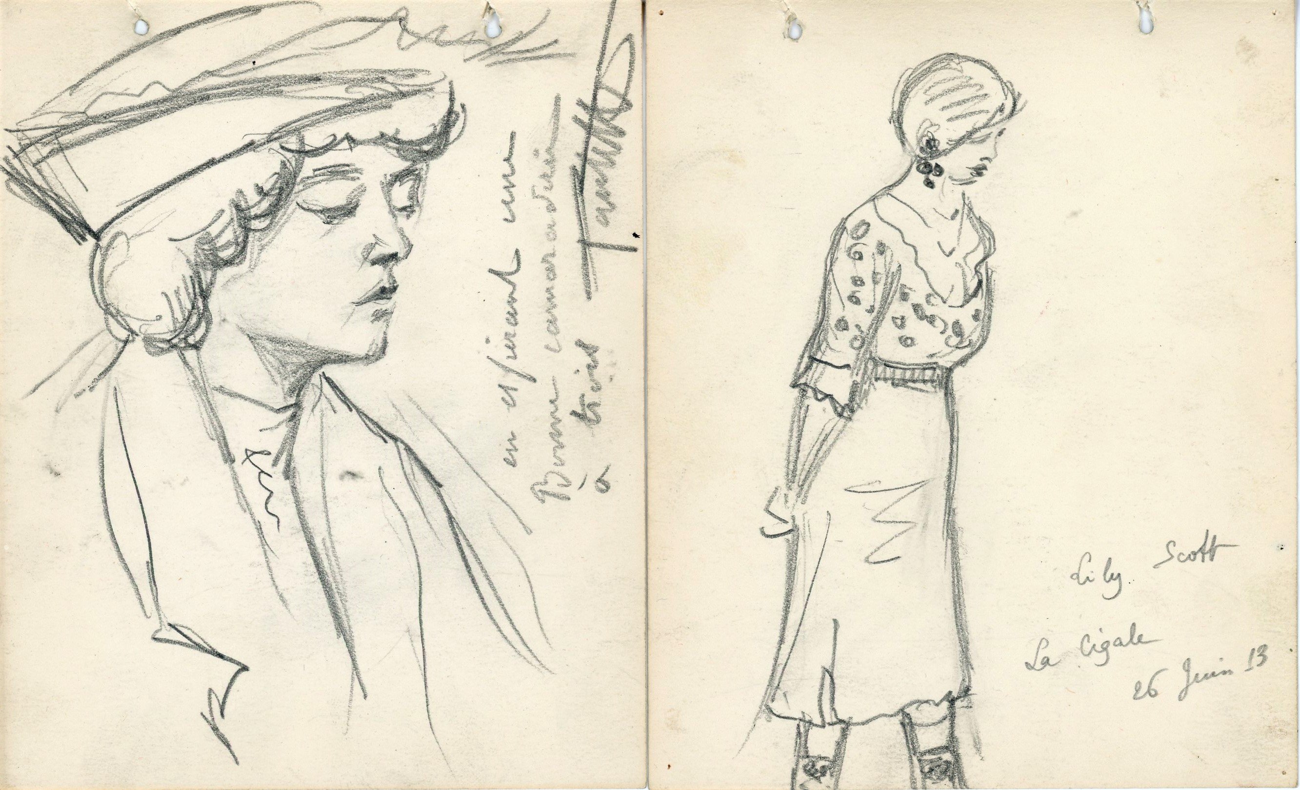 - 2 brouillons de lettre adressée à Lily Scott, chanteuse-comédienne à la Cigale à Paris ;