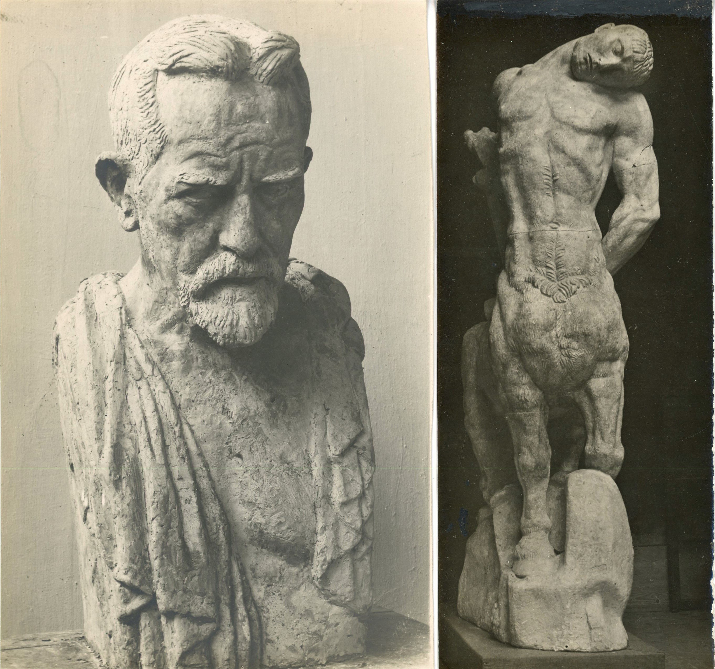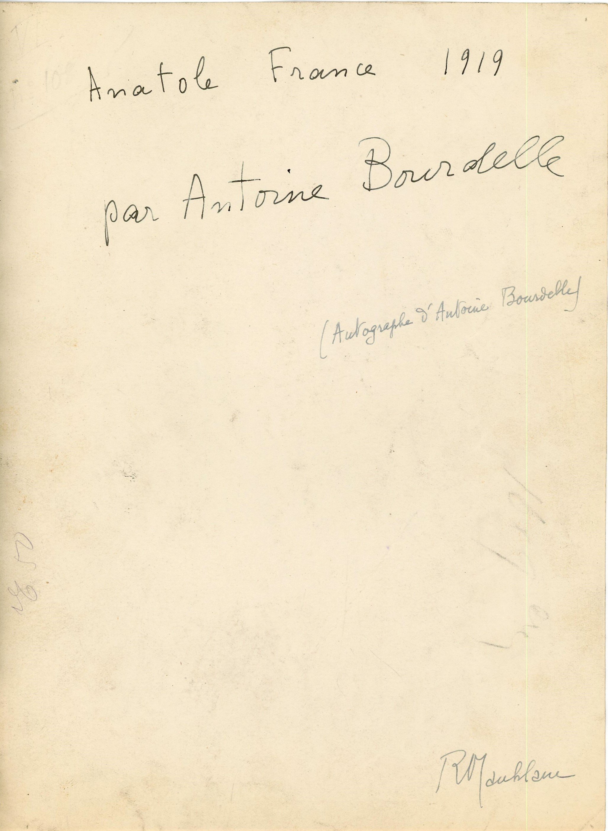 - 4 tirages photographiques de sculptures, légendées, datées et signées au dos par lartiste: « Le Centaure Mourant », « Tête de la statue La Victoire du Mt Alvéar », « Sir James Georges Frazer », « Anatole France » ;