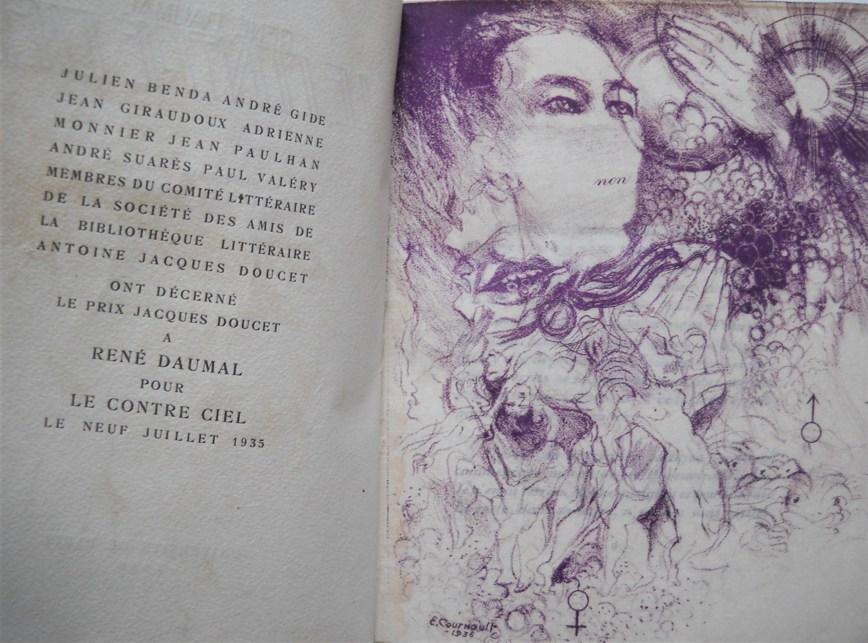 Le contre ciel, en frontispice lithographie originale d'Etienne COURNAULT tirée sur Chine, Université de Paris, 1936, br. in-8, 97 pages, non coupées. Ex. H.C. n°25/75 sur papier d'auvergne vélin. Envoi autographe signé.