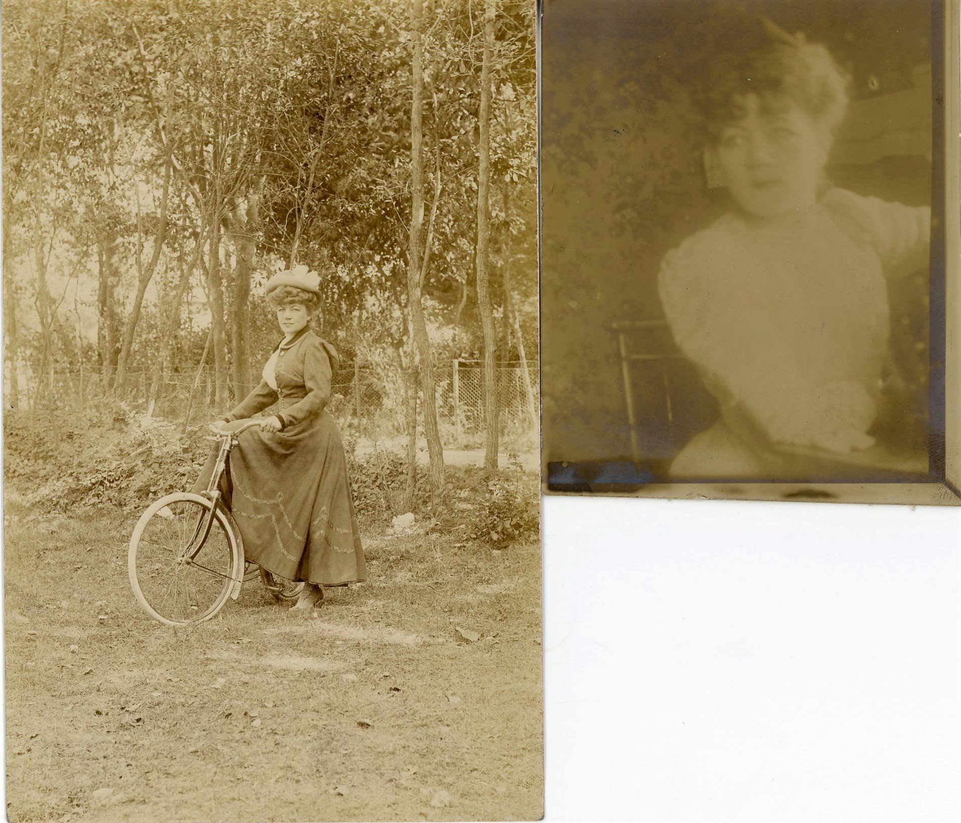 Joint: carte photo avec texte manuscrit au dos « Tête de linotte, visage de singe, et cœur de moineau, mais un moineau fidèle dans les amitiés comme dans ses amours » signé « Y. K. » - Portrait photographique de femme.