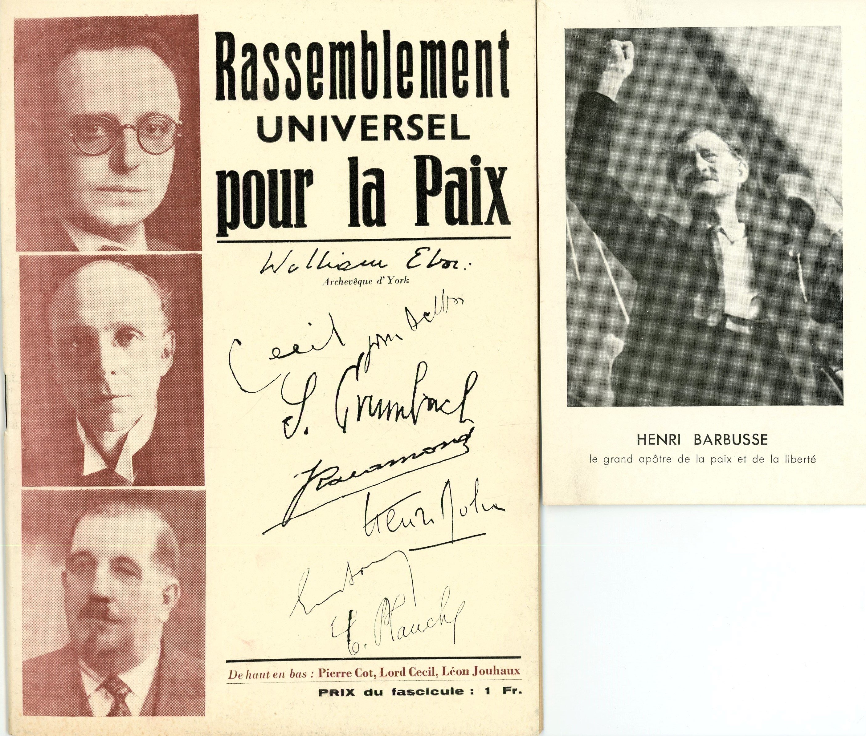- « Comité mondial contre la guerre et le fascisme », 10 L.S., 1935-1938, dont certaines signées par Paul LANGEVIN et Francis JOURDAIN ;