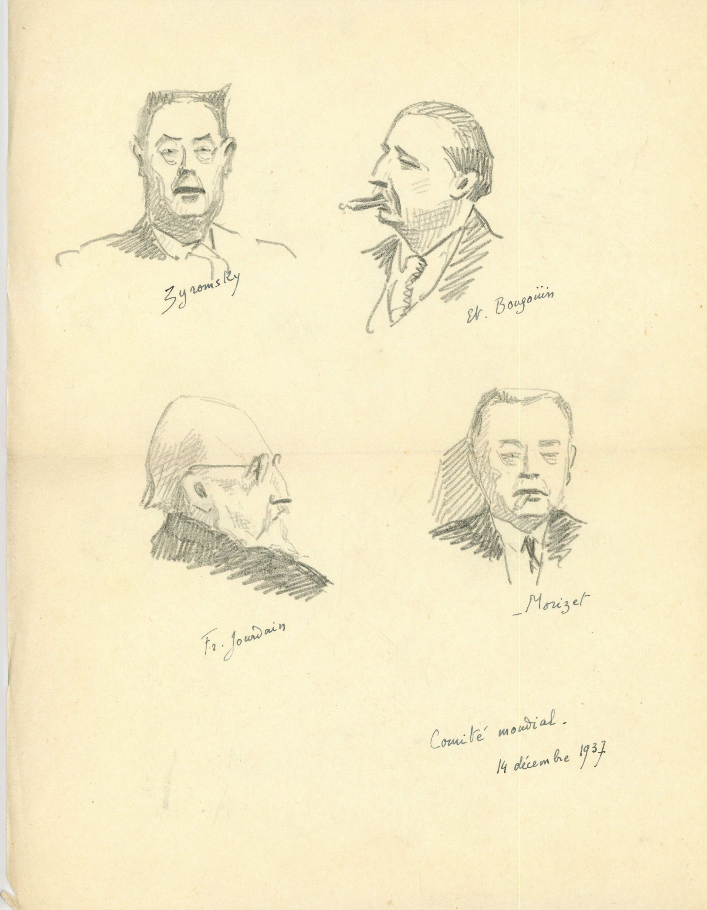 - Documents distribués lors des comités mondiaux contre la guerre et le fascisme tenus en 1935, 1936 et 1937, avec croquis de René Maublanc ;