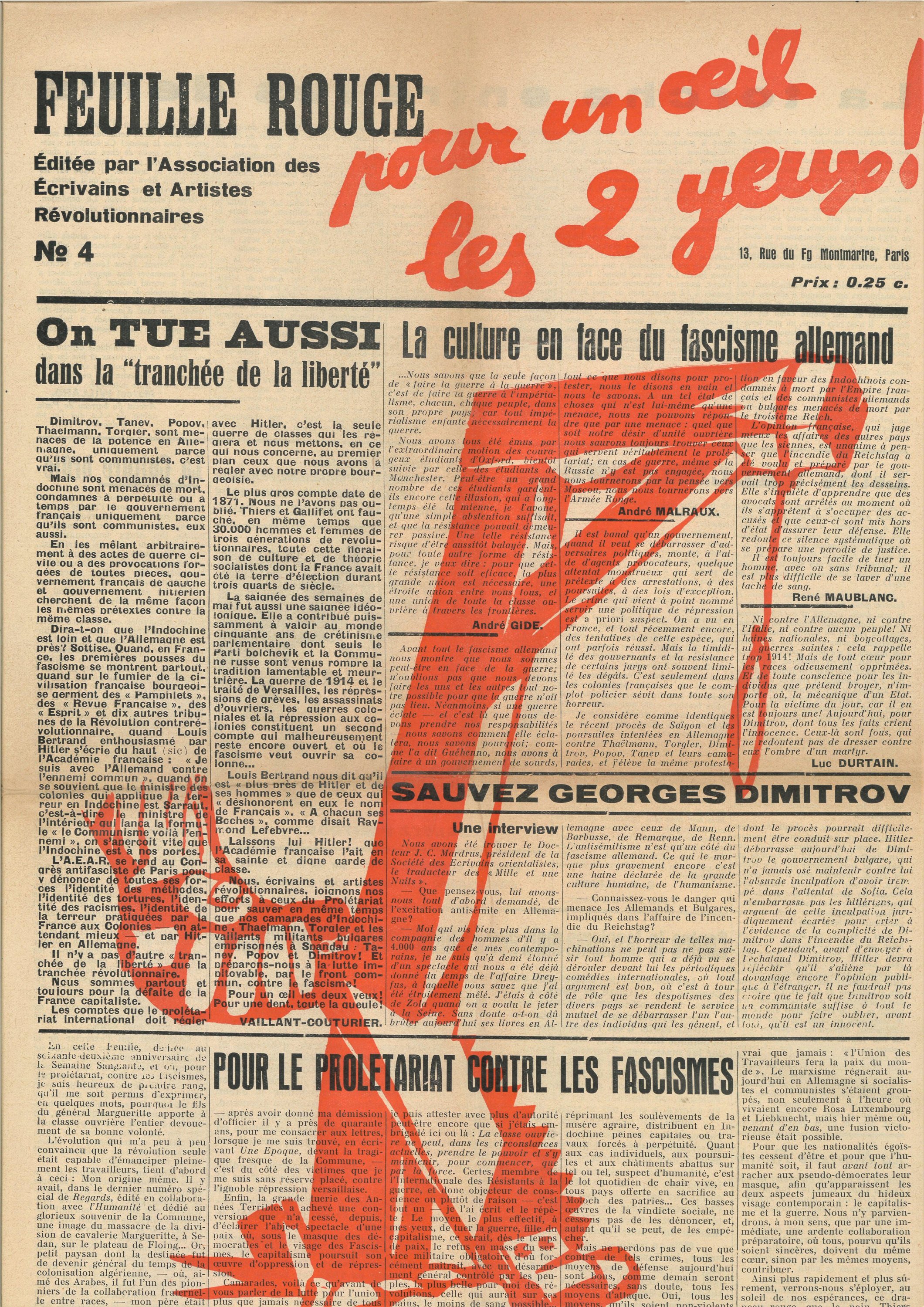 - 2 rares exemplaires du journal « Feuille Rouge », n°4 et n°6 (seulement 6 numéros publiés entre mars 1933 et février 1934) ;