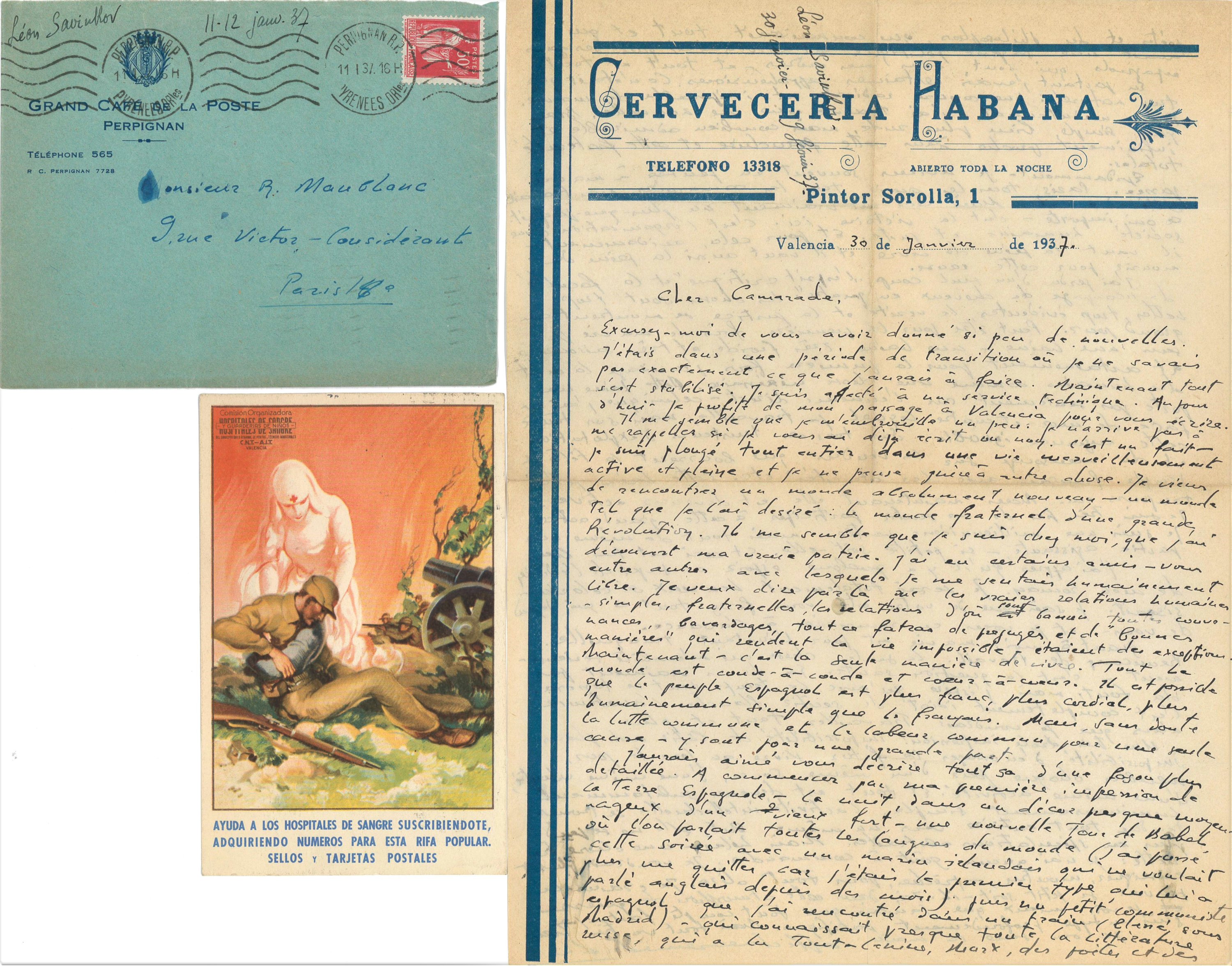 Correspondance relatant son engagement sur le front espagnol, les difficultés pour obtenir la publication de son récit écrit avant son départ pour lEspagne, lécriture de ses nouvelles après son retour du front, ses réflexions philosophiques et politiques, appelant notamment à la révolution totale.