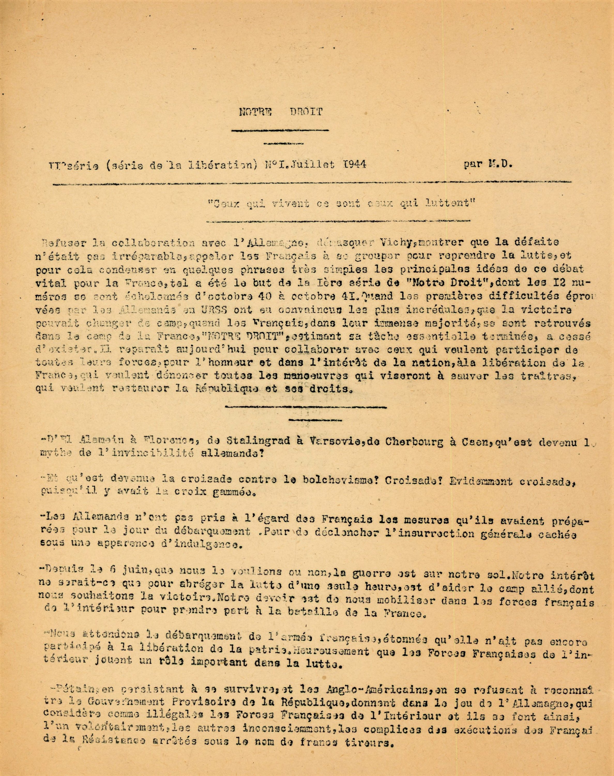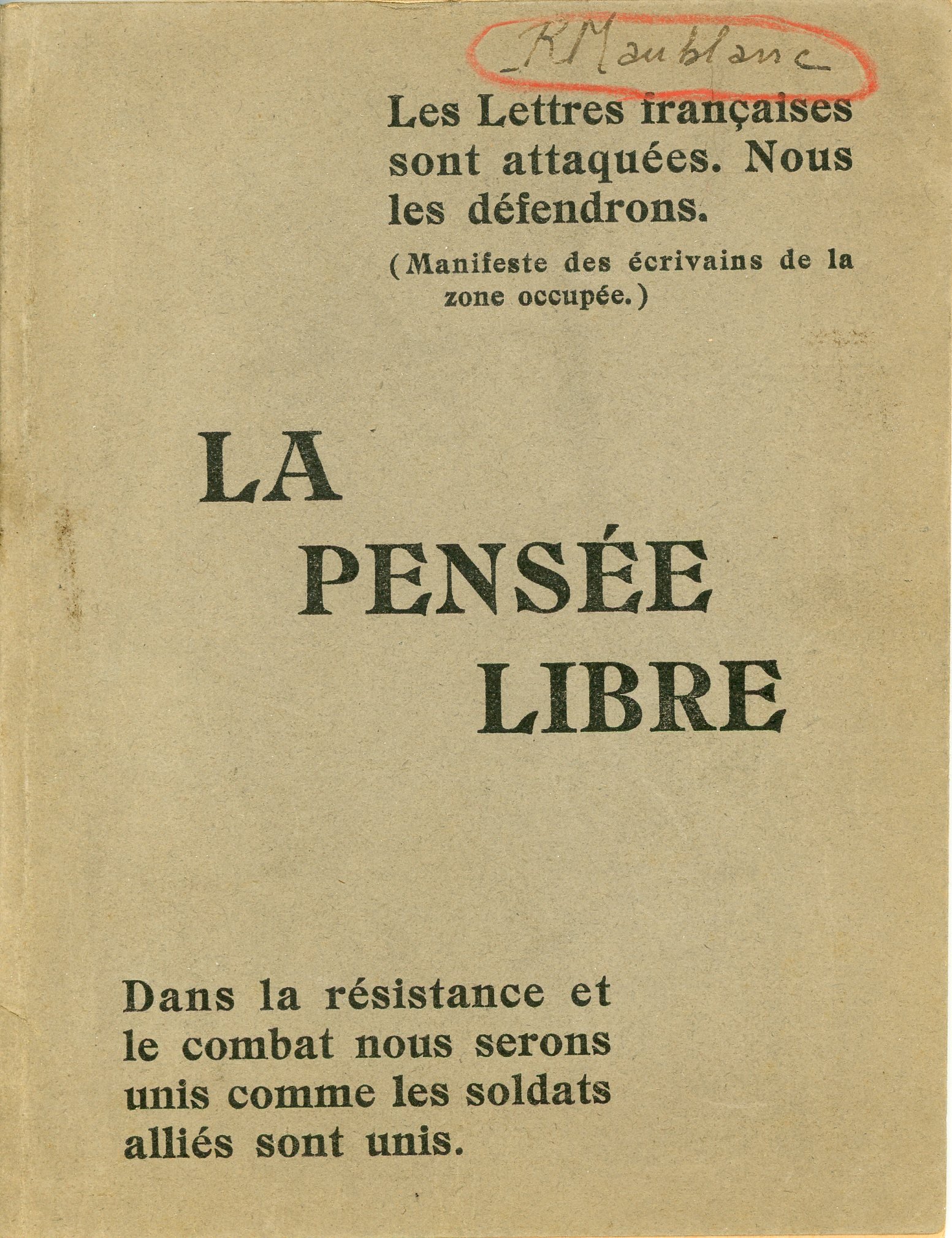 PUBLICATIONS CLANDESTINES ET DE LA LIBERATION, 1940-1944