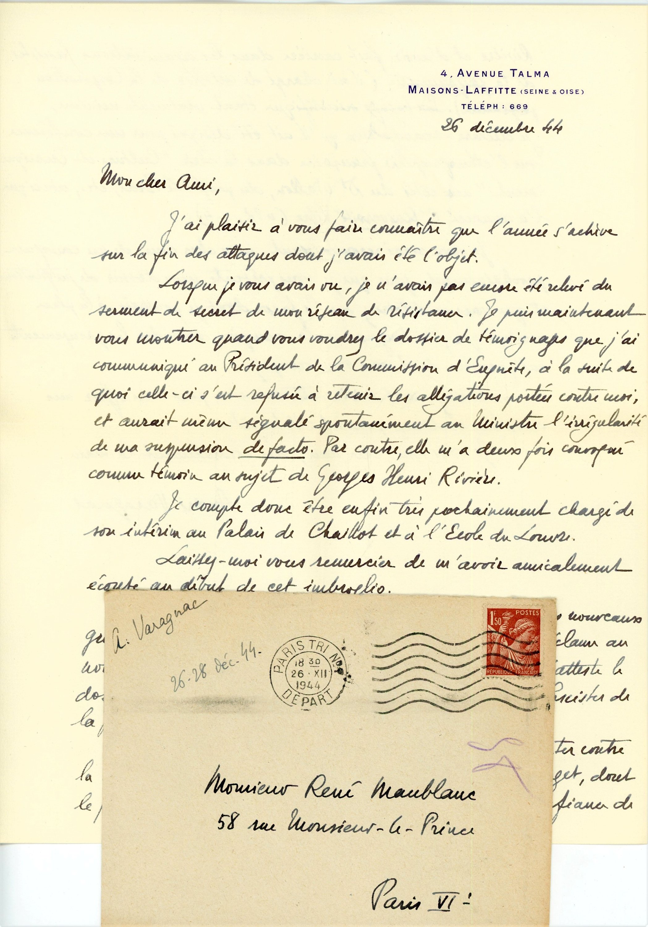- L.A.S. dHenri WALLON, 22 décembre 1945, au sujet du cas de Gustave MONOD, directeur de lenseignement secondaire + lettre tapuscrite de Gustave MONOD, février 1946, au sujet des articles de R.M. « Esquisse dune morale républicaine » parus dans lEcole Laïque.