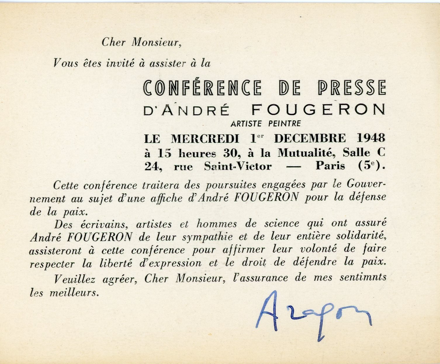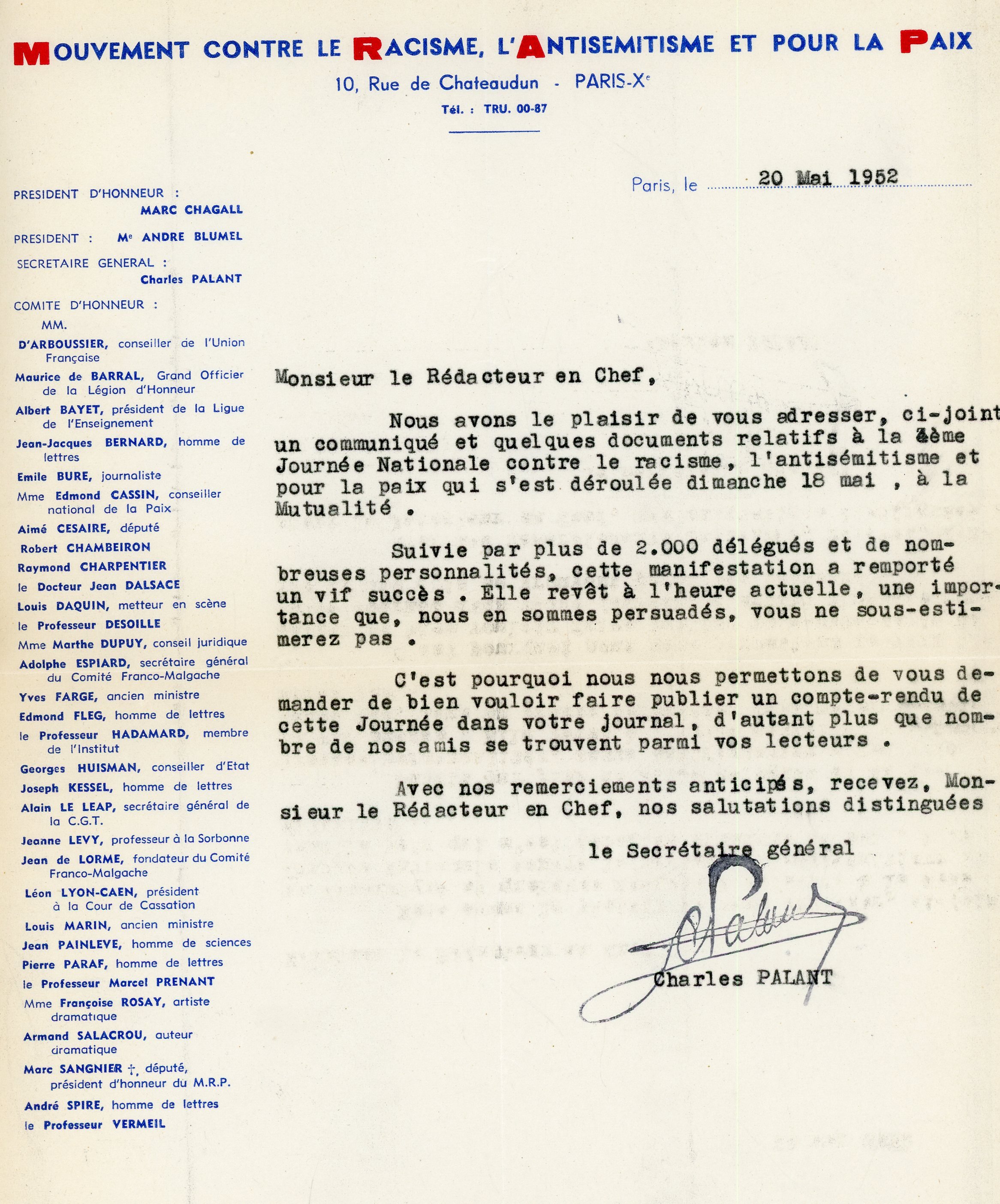 Correspondances de Louis ARAGON, Paul BOUTHONNIER (LUniversité Nouvelle), Auguste CHEVALIER, Marcel CORNU, Paul DELANOUE, Jean DELORME (comité malgache), Rémy GARÇONNET, Jean ROULON (LEcole Laïque), André STIL, Louis de VILLEFOSSE, etc.