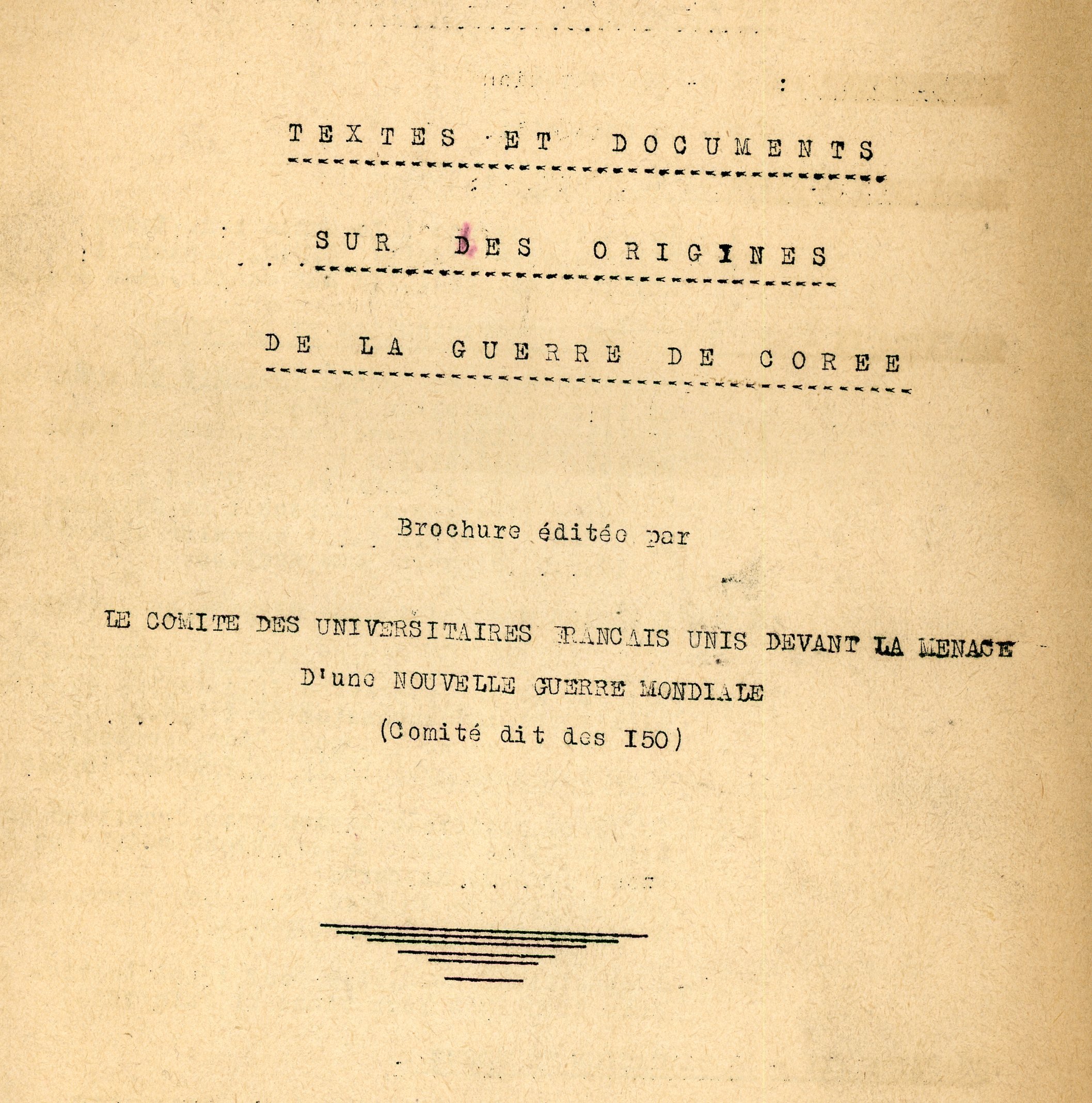 ), dans le syndicalisme enseignant et le militantisme universitaire (« Mouvement des 150 » avec appel contre la menace dune nouvelle guerre mondiale, contre la guerre de Corée ; « Comité universitaire pour la défense des libertés » ; Union française des Intellectuels (UNI), Union française universitaire (UFU), Union rationaliste, LEcole Laïque, etc), au sein du Parti communiste français (rapports des commissions internes et notes de lecture de la section idéologique, revues de presse, correspondance de militants et de sections darrondissements ; association France-U.R.S.S. ; lenseignement ouvrier et lUniversité Nouvelle ; Peuple et Culture ; arrestation de René Maublanc et de 35 autres manifestants communistes le 23 mai 1952: pétitions signées par les élèves du lycée Henri IV, lettres de sympathie, coupures de presse ; etc).