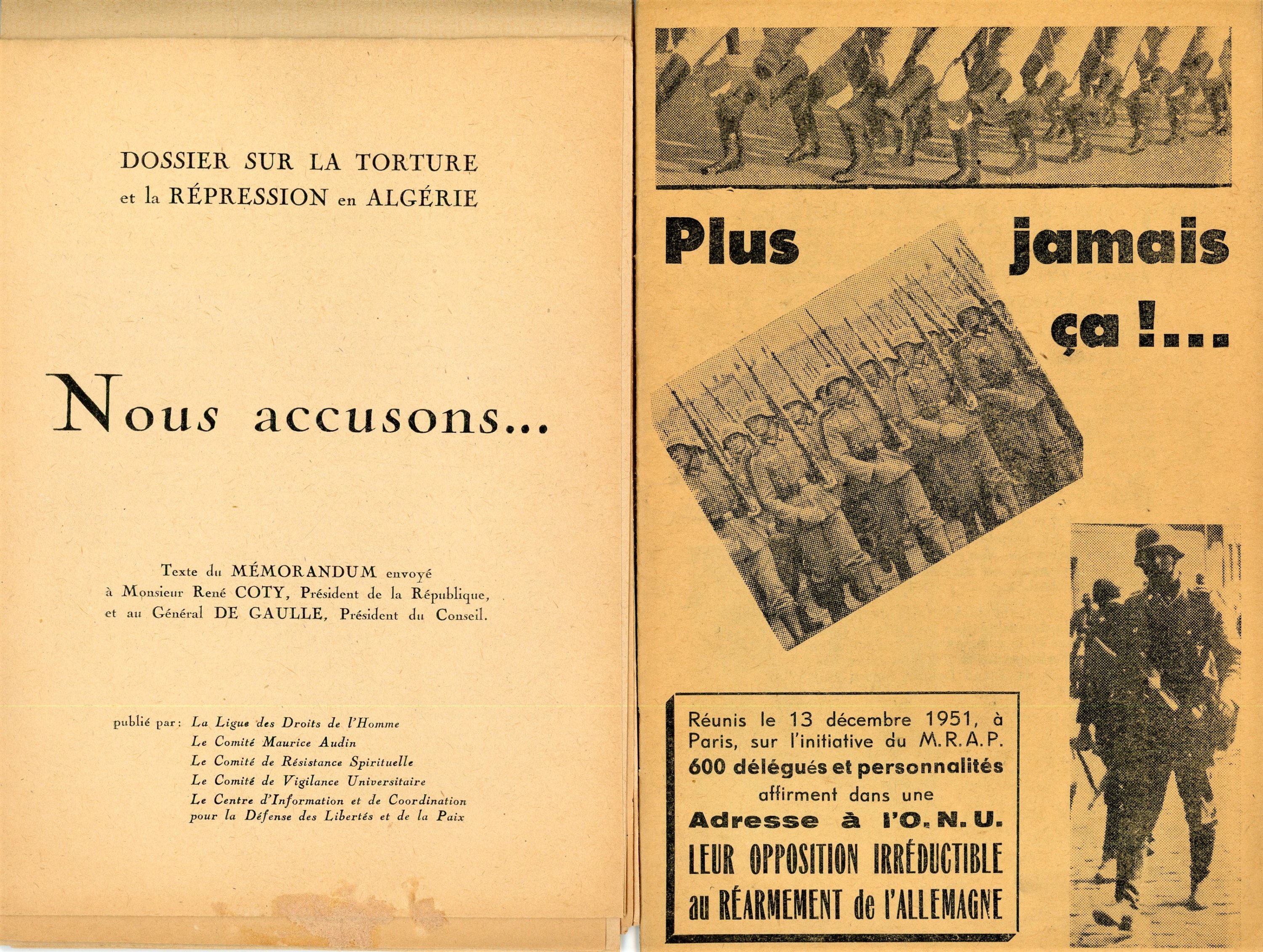 - Réunion de correspondances, tracts, rapports, bulletins dinformations reçus par René Maublanc entre 1944 et 1960, relatifs à ses multiples engagements dans les mouvements de lutte pour la paix, la liberté et anticolonialiste en France, Algérie, Vietnam, Grèce, Yougoslavie, Madagascar, Pologne (« Mouvements contre le racisme, lantisémitisme et pour la paix », « Conseil national du mouvement de la paix », « Pour la défense du professeur André Bonnard et des libertés dexpression », « Combattants de la paix et de la liberté »