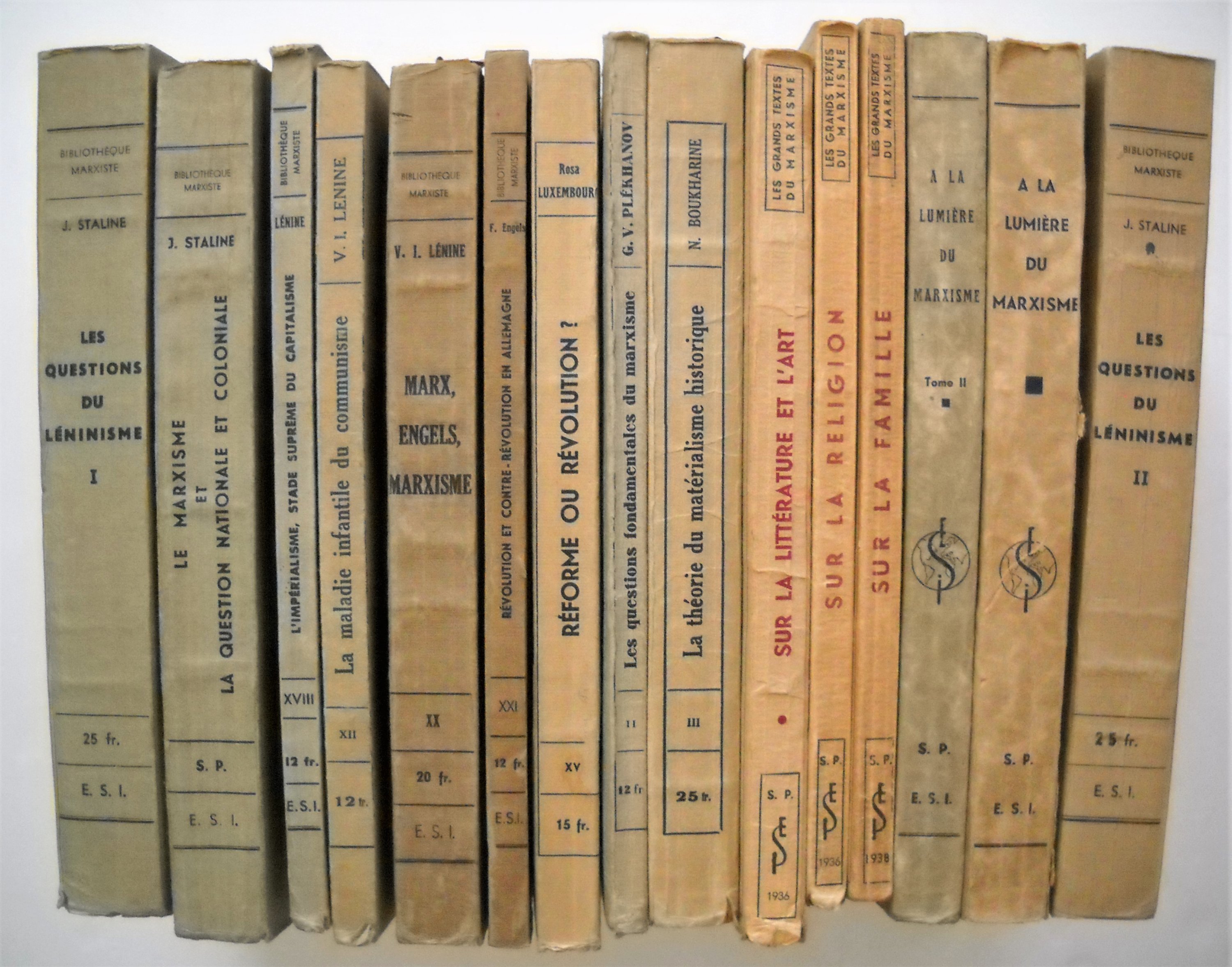 Collection « Bibliothèque Marxiste »: J. STALINE: Le marxisme et la question nationale et coloniale, 1937, 342 pages. Ex. S.P. ; Les questions du Léninisme, tome I et II, 1938, 406 et 429 pages.