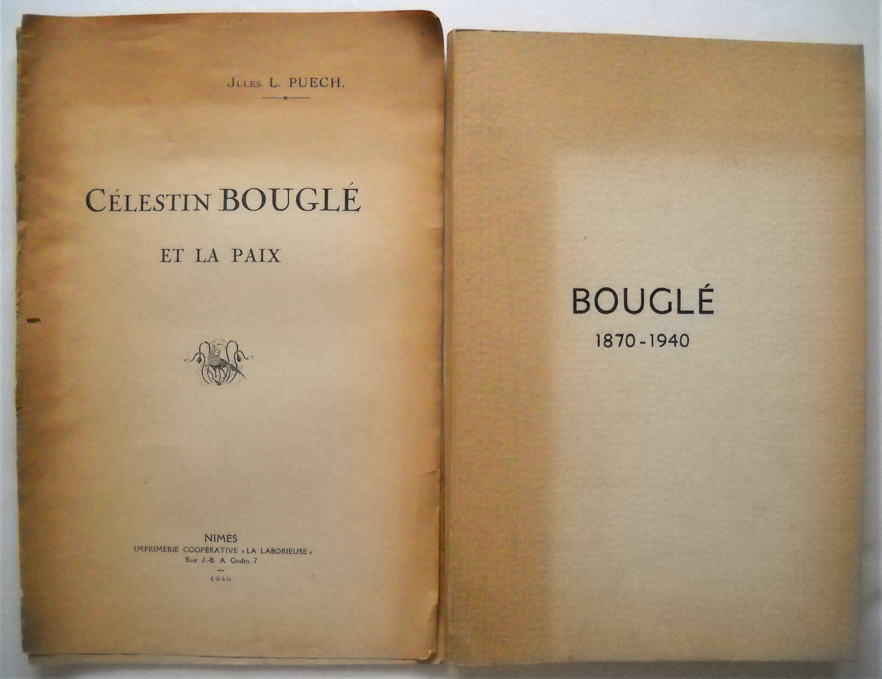 Joint: Bouglé 1870-1940, chez lauteur, br. in-8, 72 pages. Jules L. PUECH, Célestin Bouglé et la paix, Coopérative La Laborieuse, Nîmes, 1940, plaquette in-8, 12 pages.
