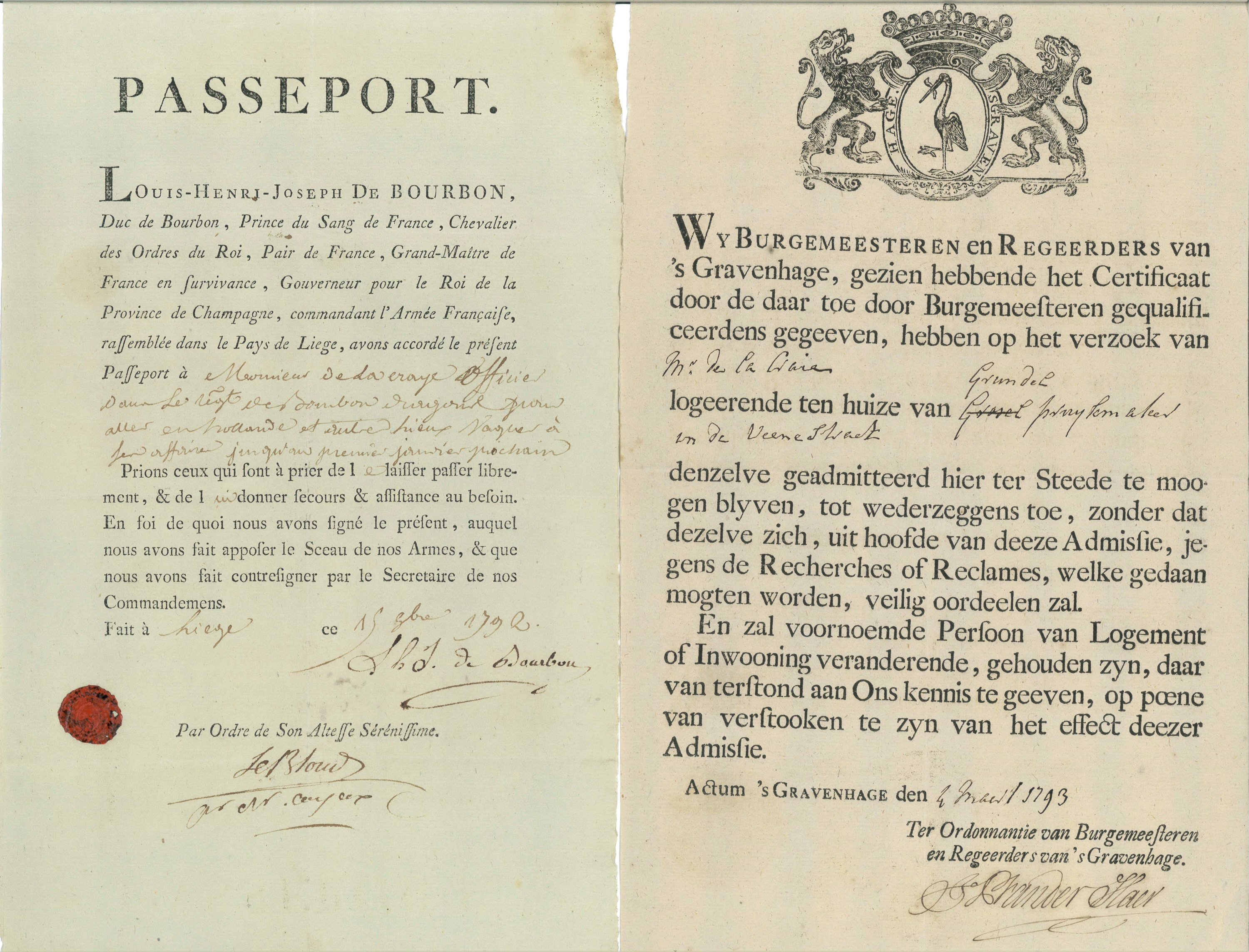 2 P.S. délivrées par les bourgmestres de La Haye et de Gravenhage en février et mars 1793 ;