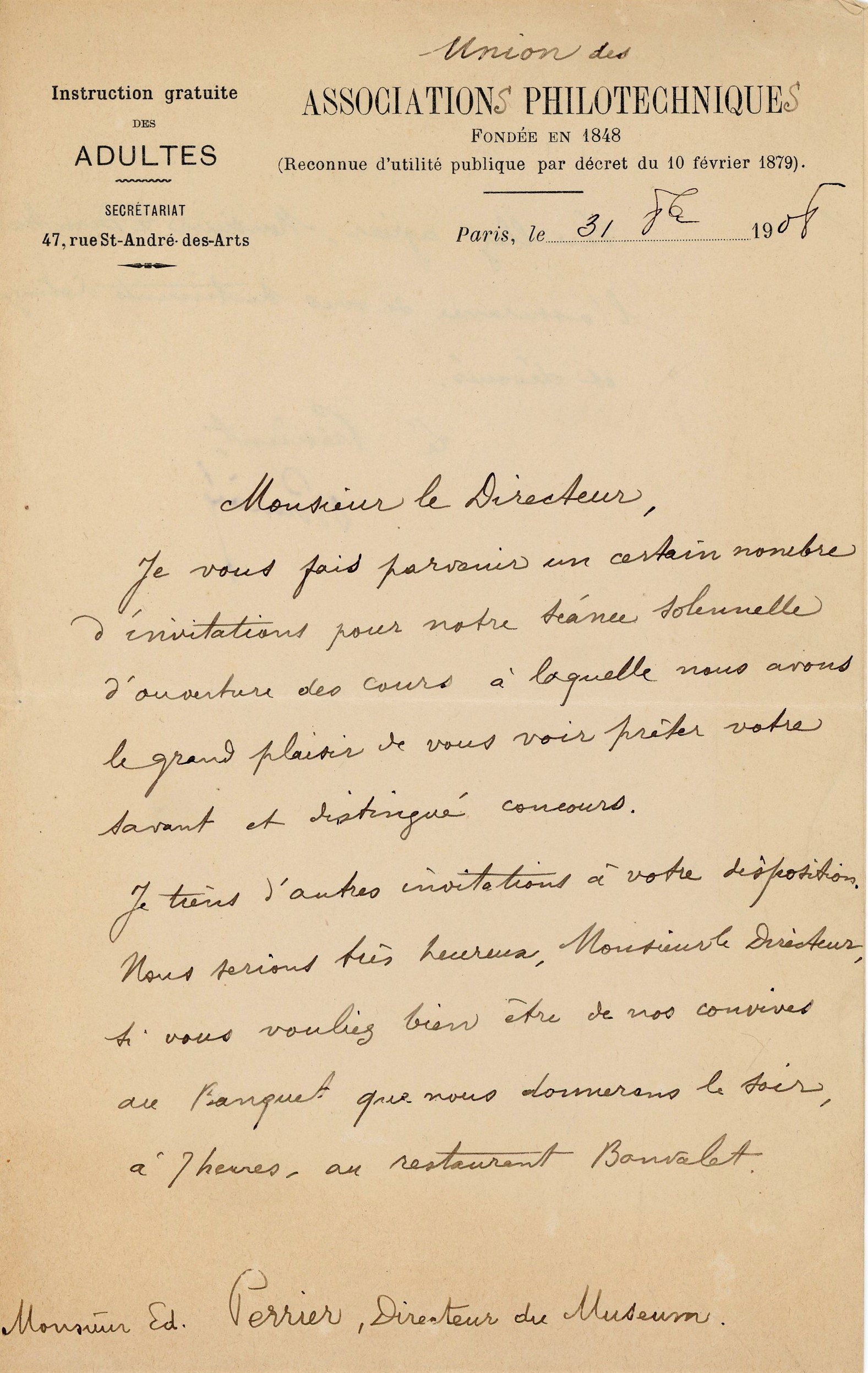 13 pièces adressées à Edmond PERRIER (1844-1921), zoologiste et directeur du Muséum d’histoires naturelles