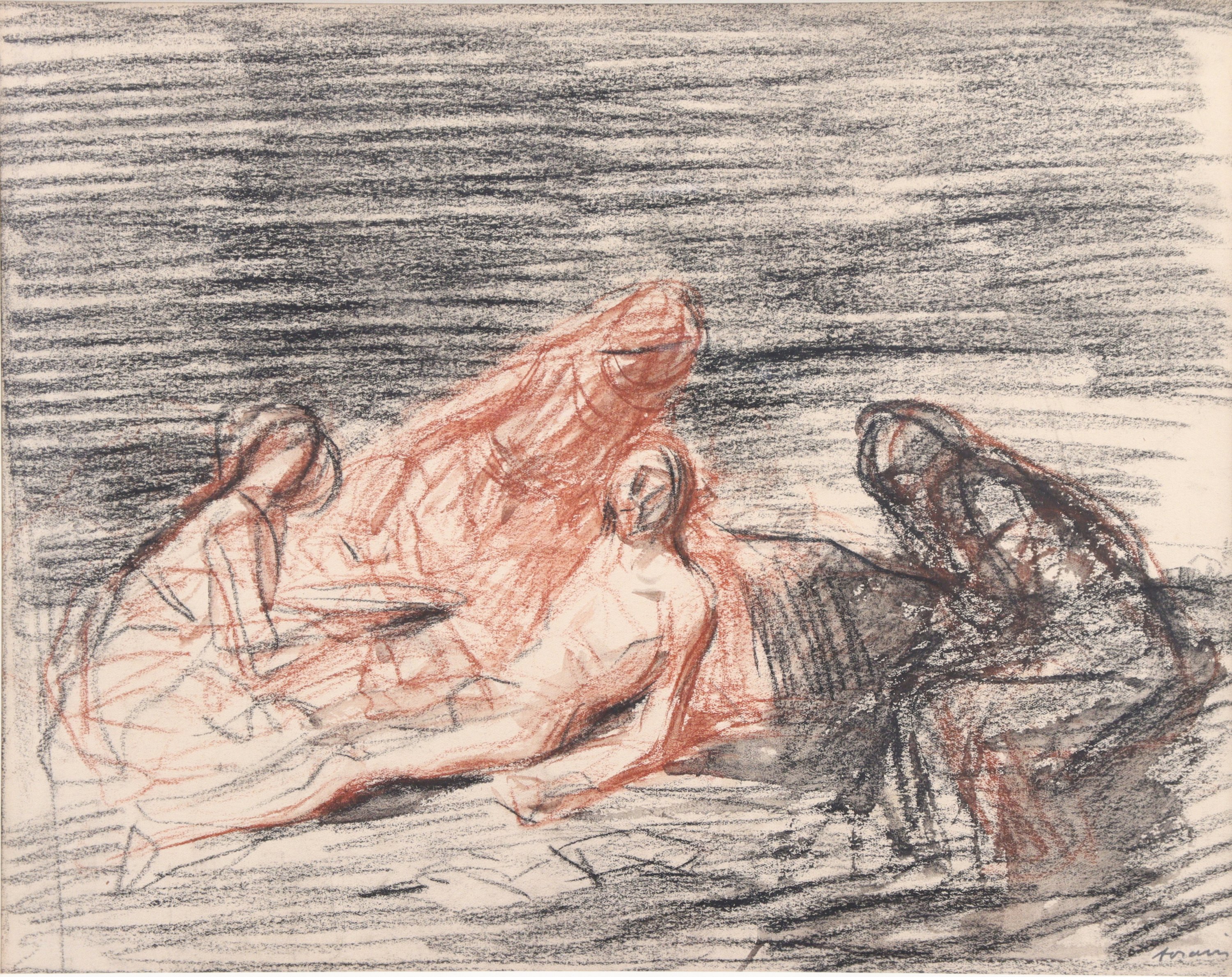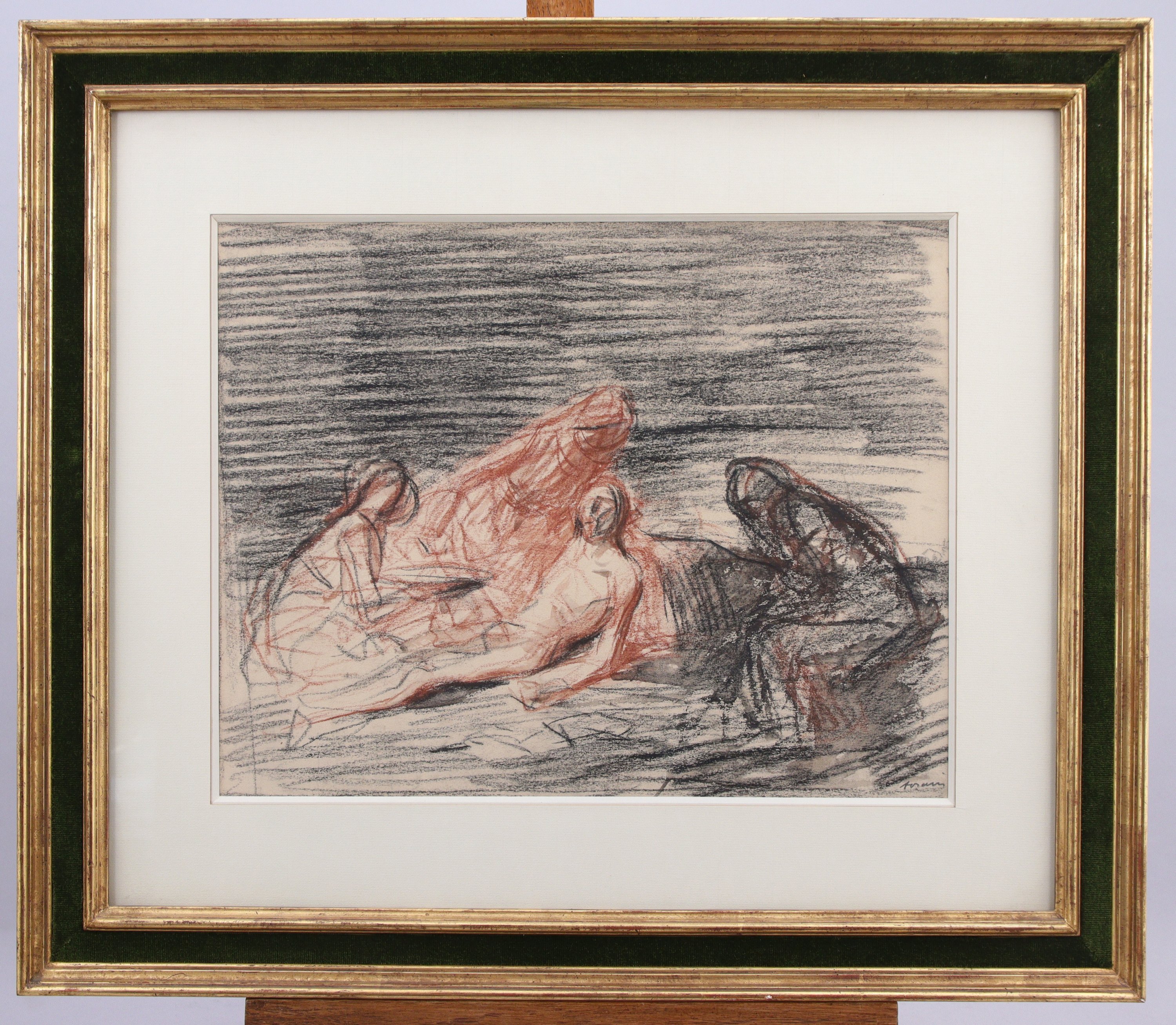 Deux fusains, sanguines et rehauts, signés en bas à droite.