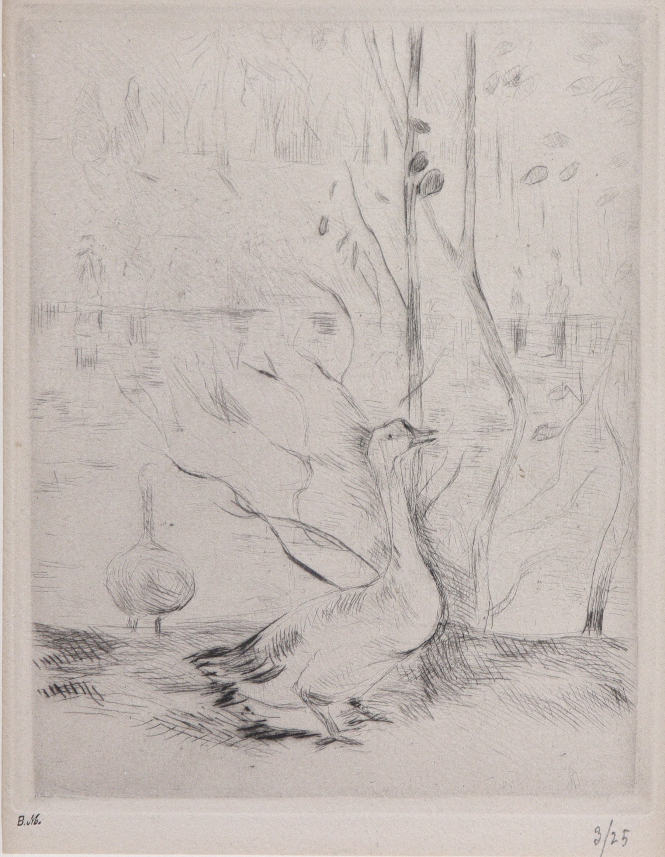 Pointe sèche justifiée au crayon 3/25 et monogrammée au tampon B.M.