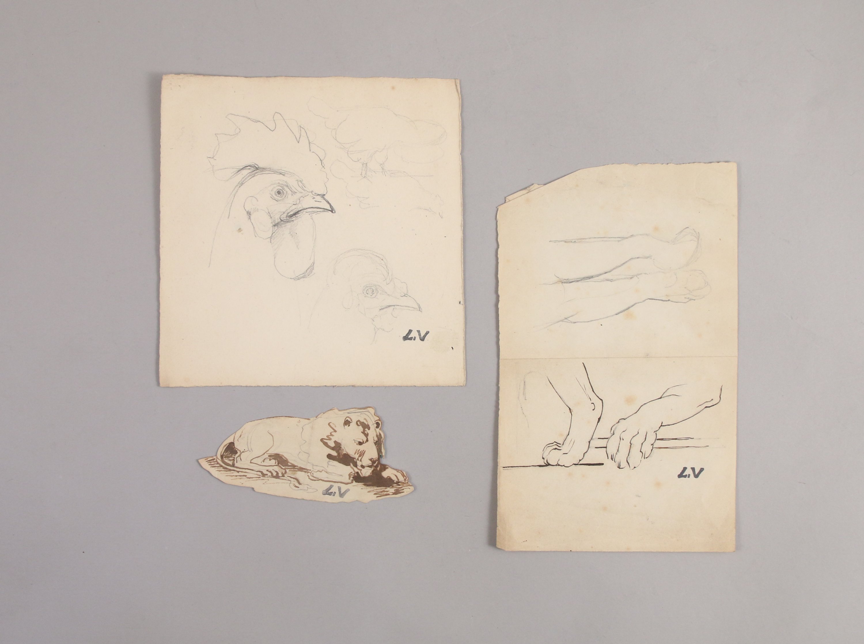 Encre et crayon, monogrammées "L.V" en bas à droite.
