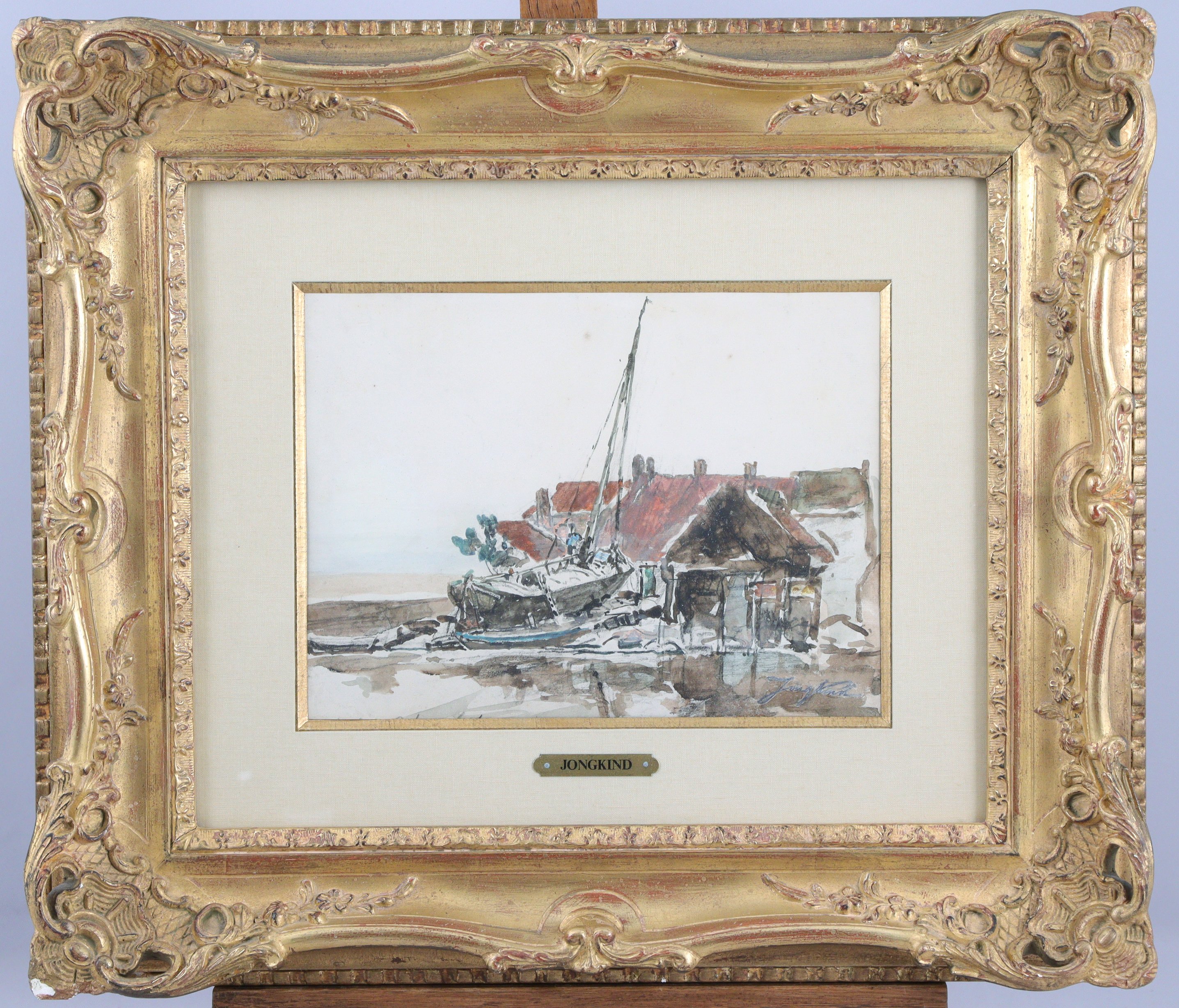 JOHAN-BARTHOLD JONGKIND (1819-1891)Navire à marée basseAquarelle sur papier, signée en...