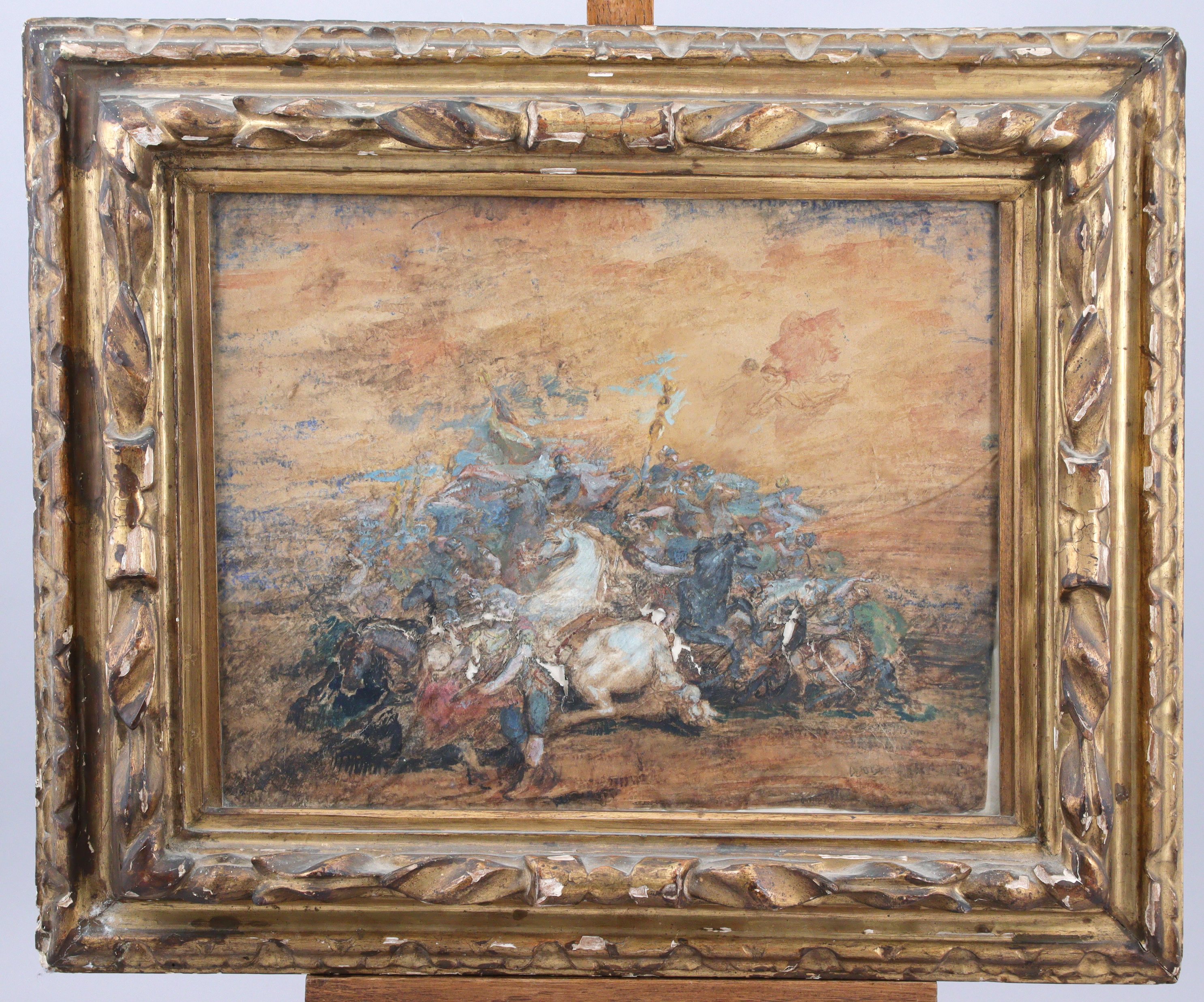 Aquarelle sur papier. Étiquette du marchand Durand-Ruel, portant le numéro "3430", le titre "Allégorie" et le médium "aq."; et de l'encadreur Dosbourg, rue Houdon".