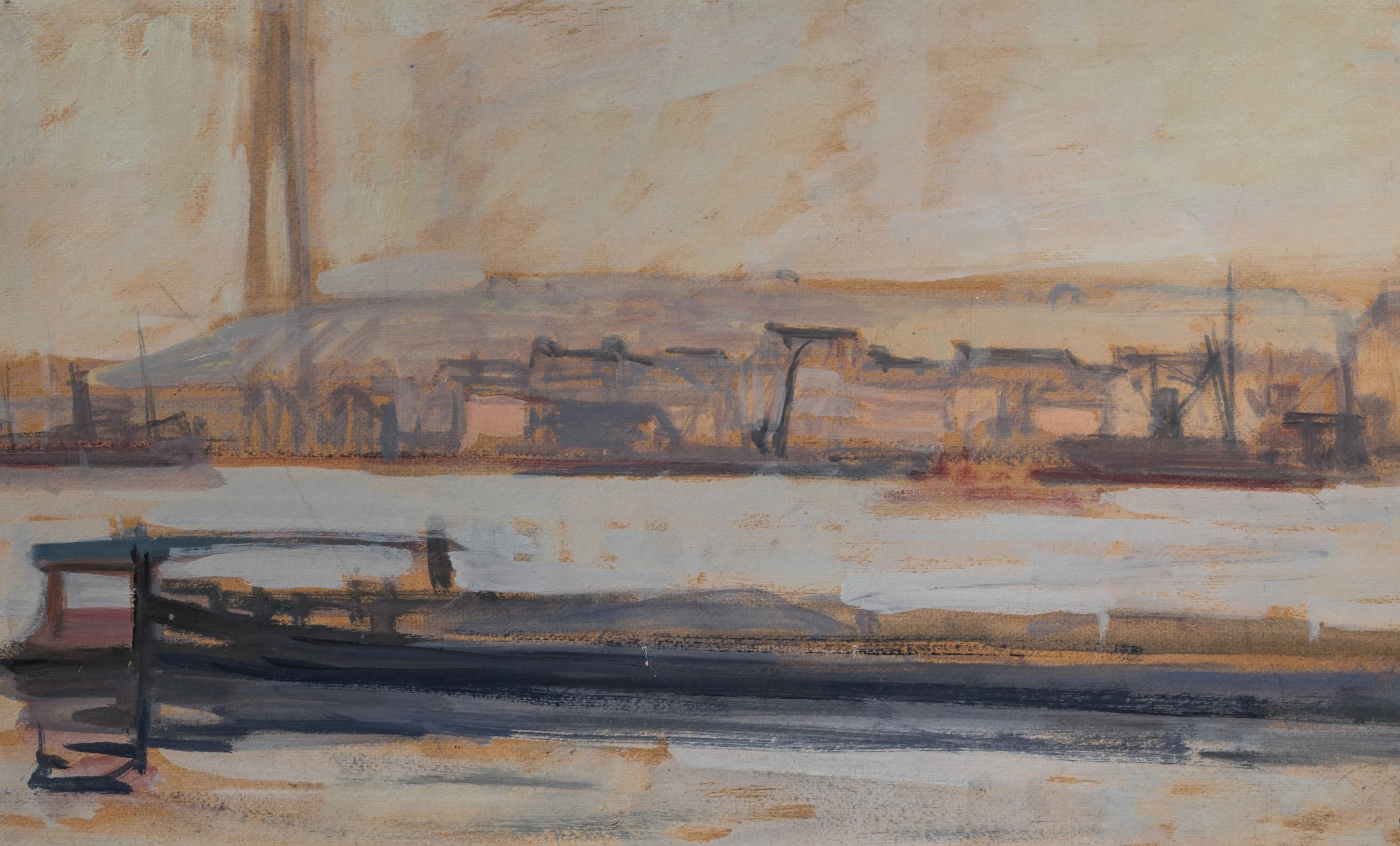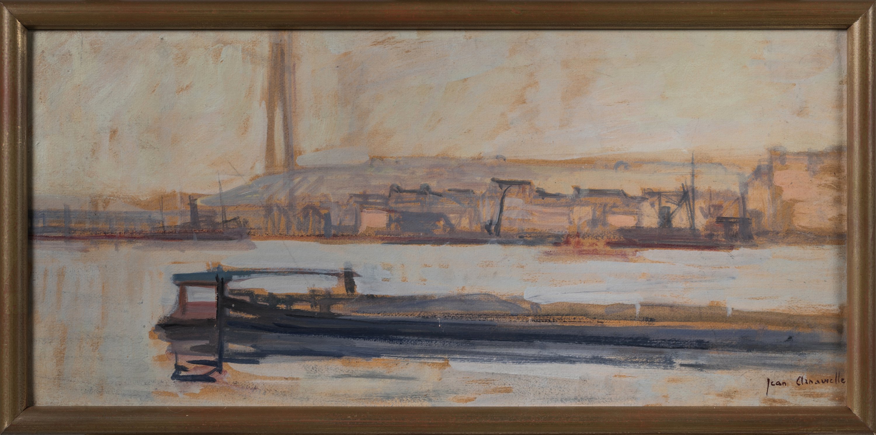 JEAN ARNAVIELLE (1881-1961) Port fluvialHuile sur carton, signée en bas...