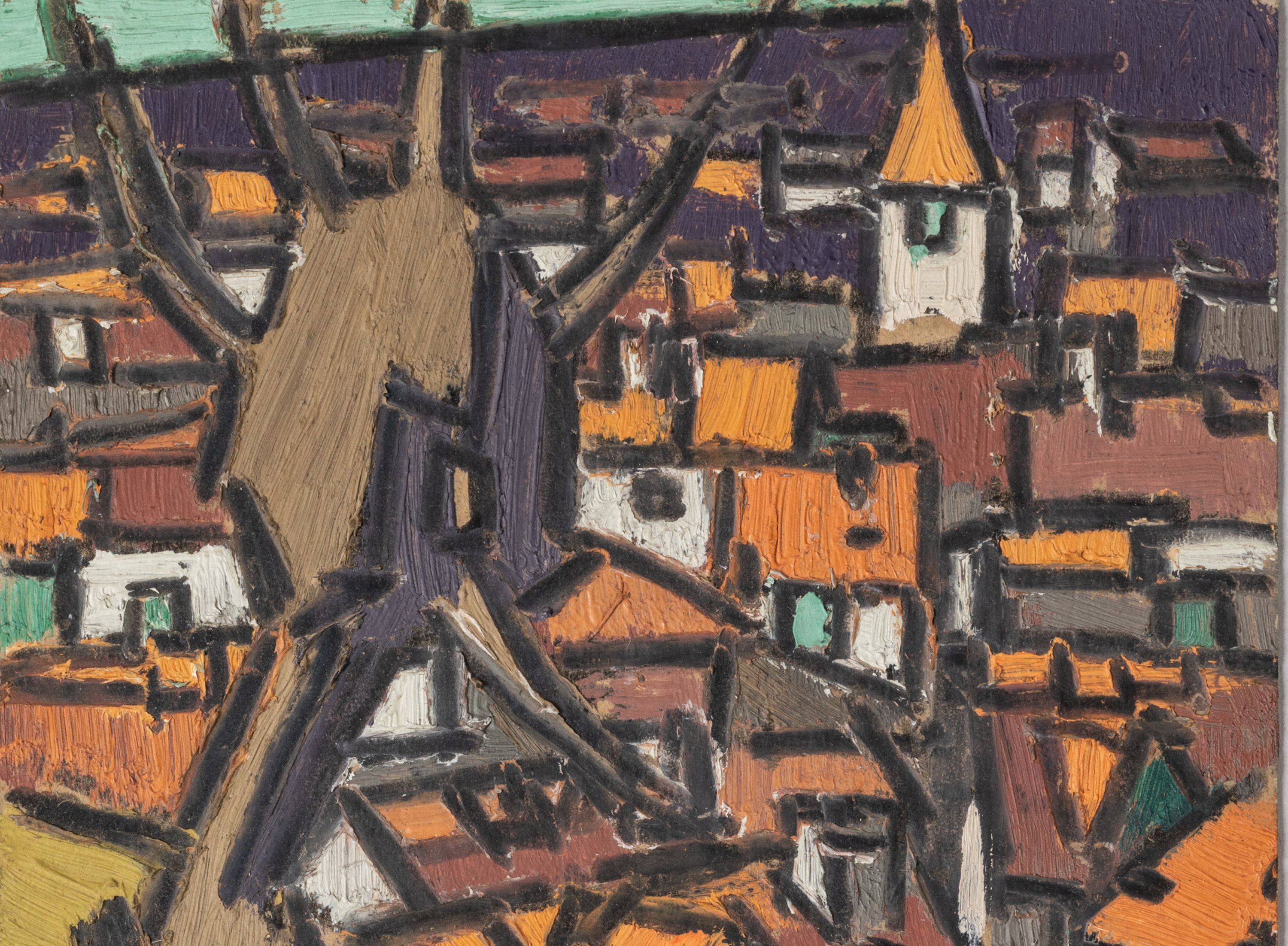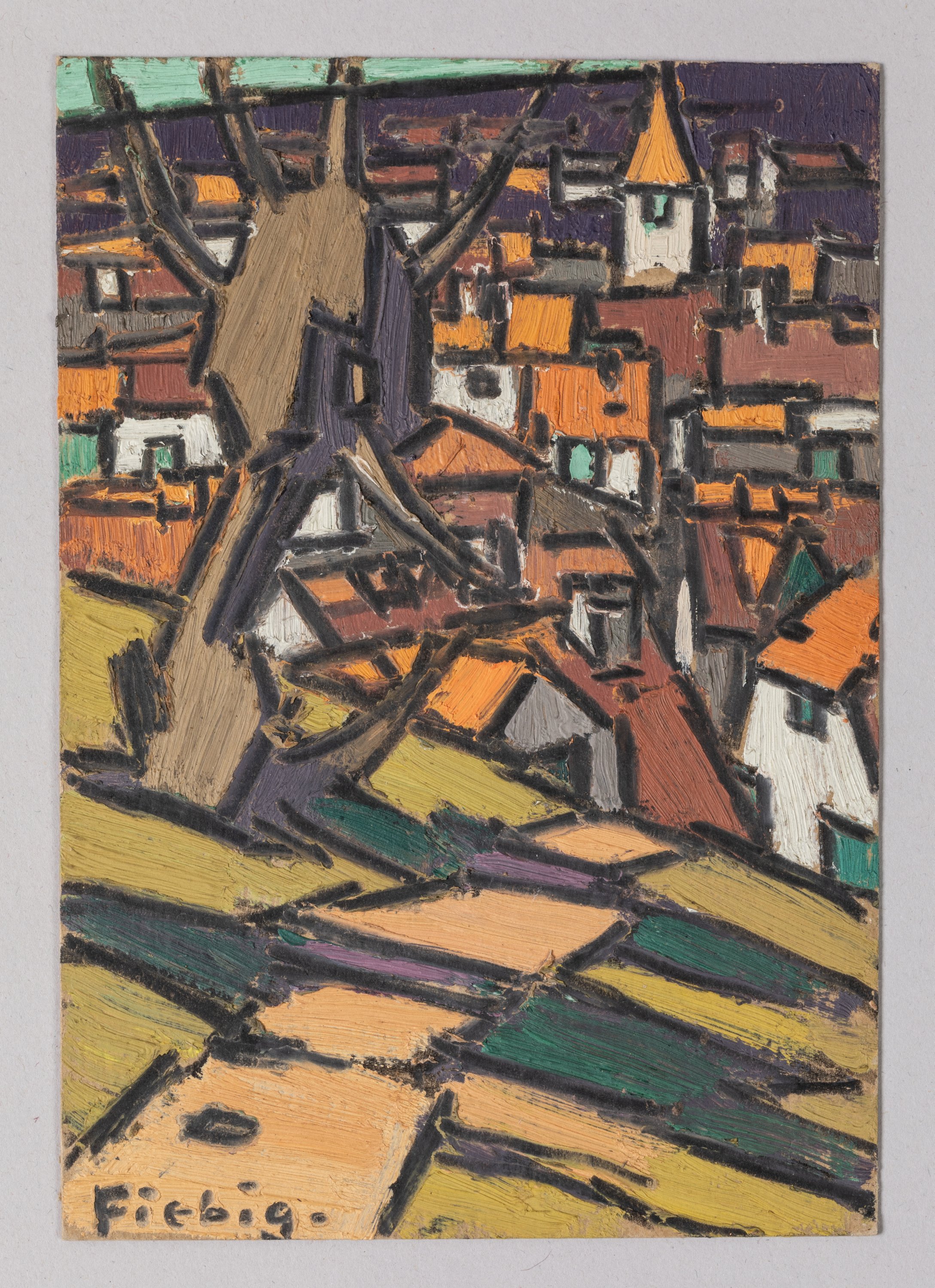 FRÉDÉRIC FIEBIG (1885-1953)Plongée sur la villeHuile sur papier cartonné, signée...