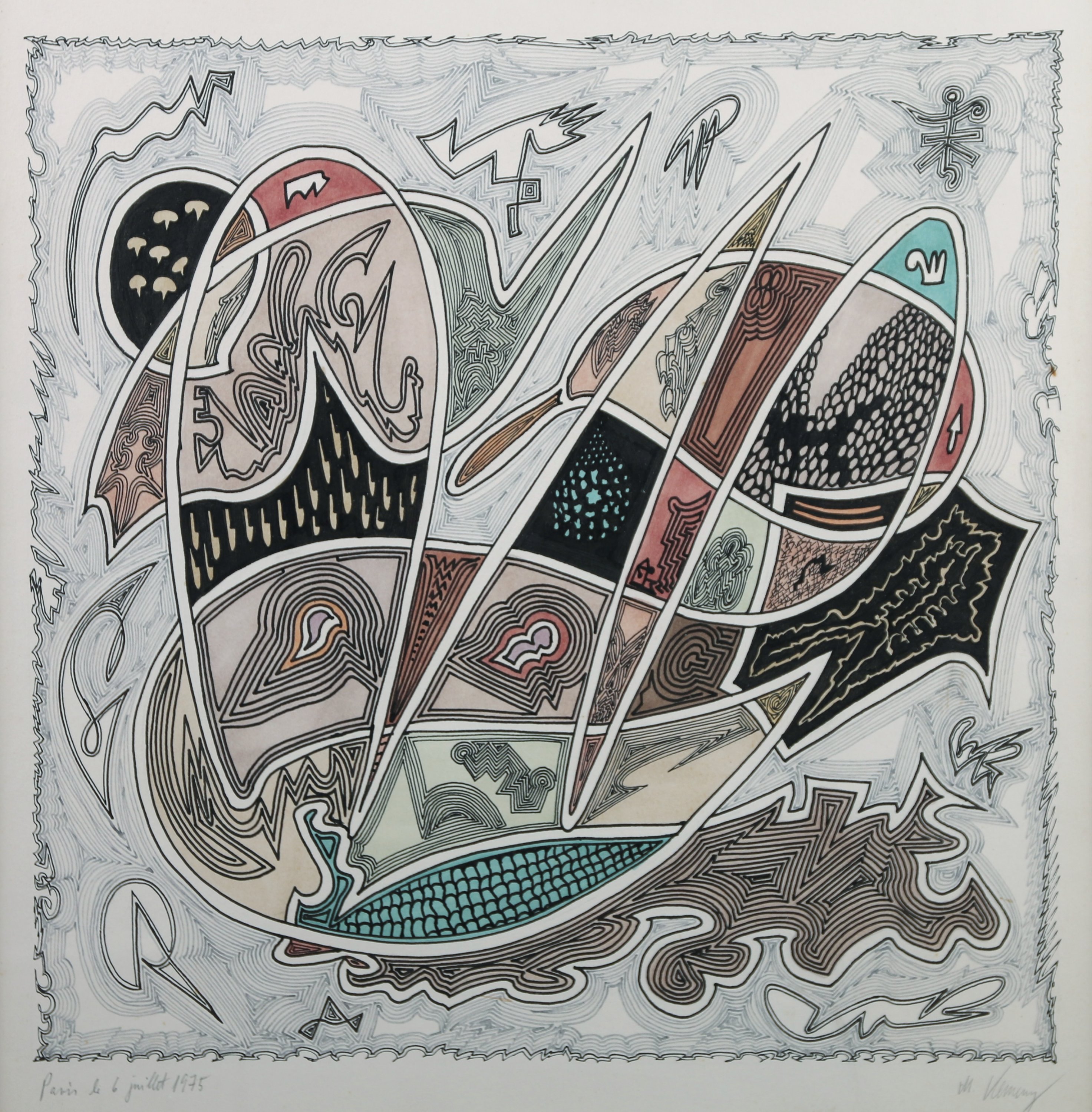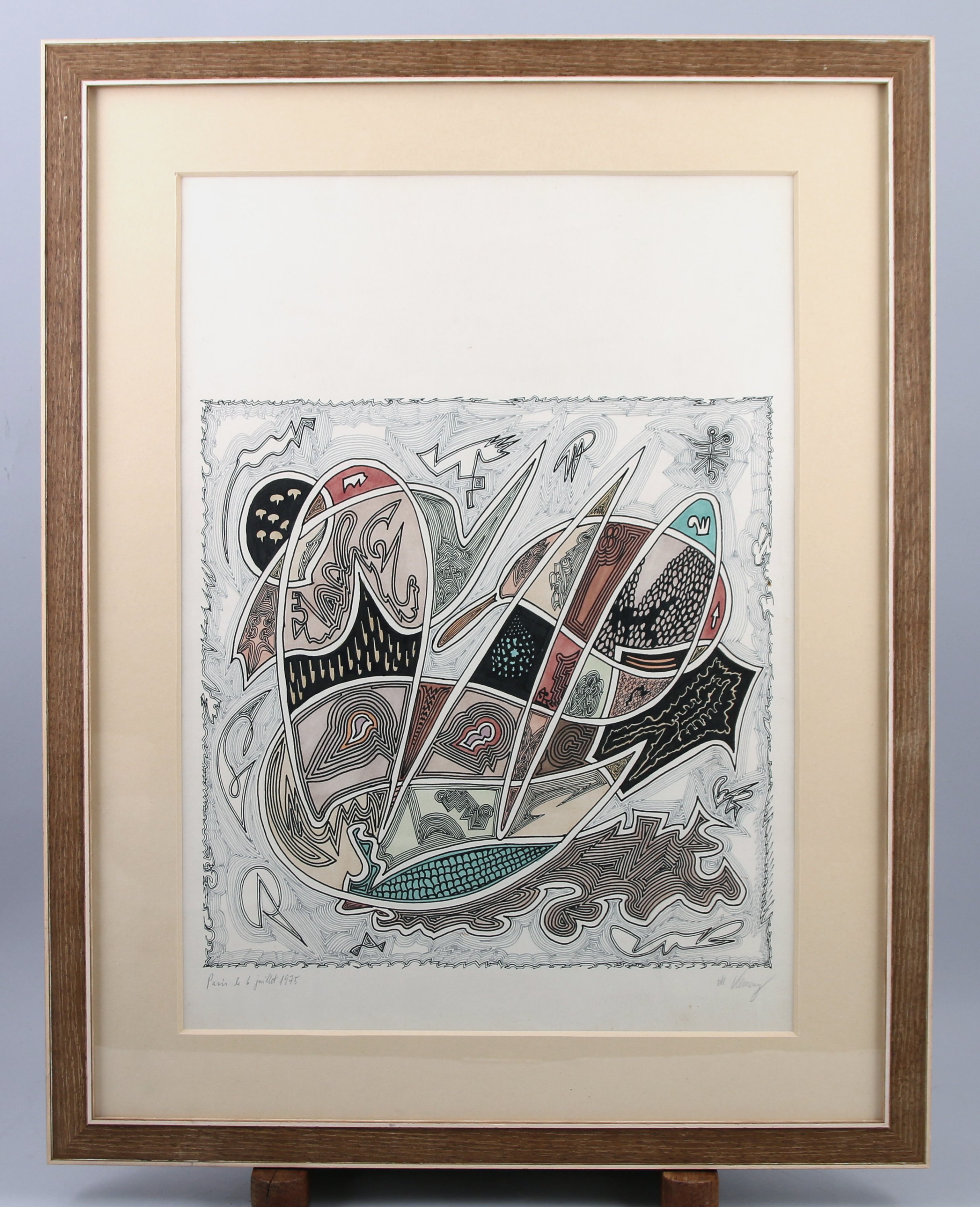 Papier, signé, situé Paris et daté 6 juillet 1975.