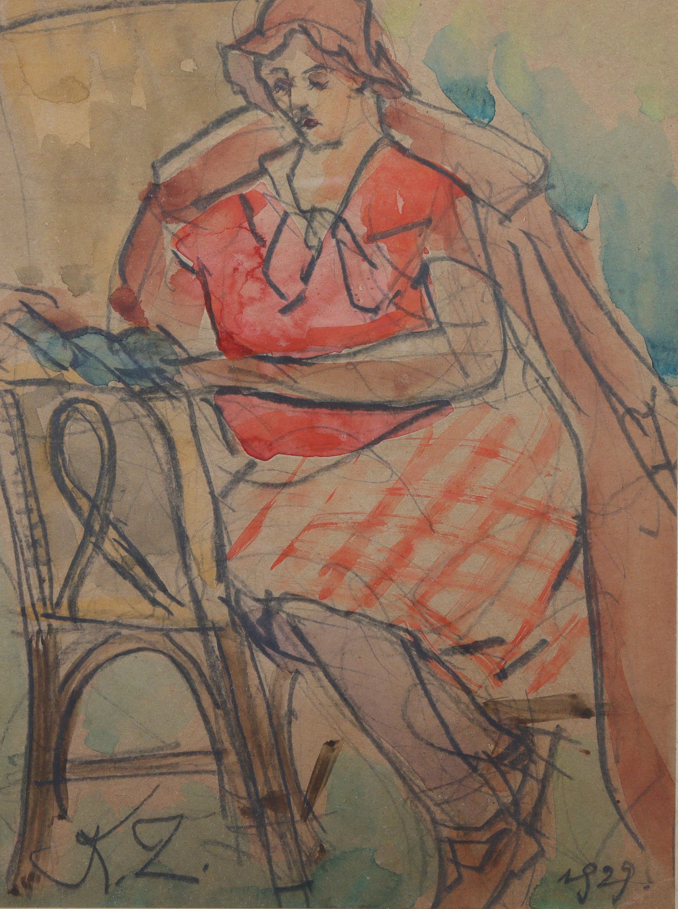 KAZIMIR ZIELENIEWSKI (Polonais, 1888-1931) Portrait de femme lisant, 1929Papier monogrammé...