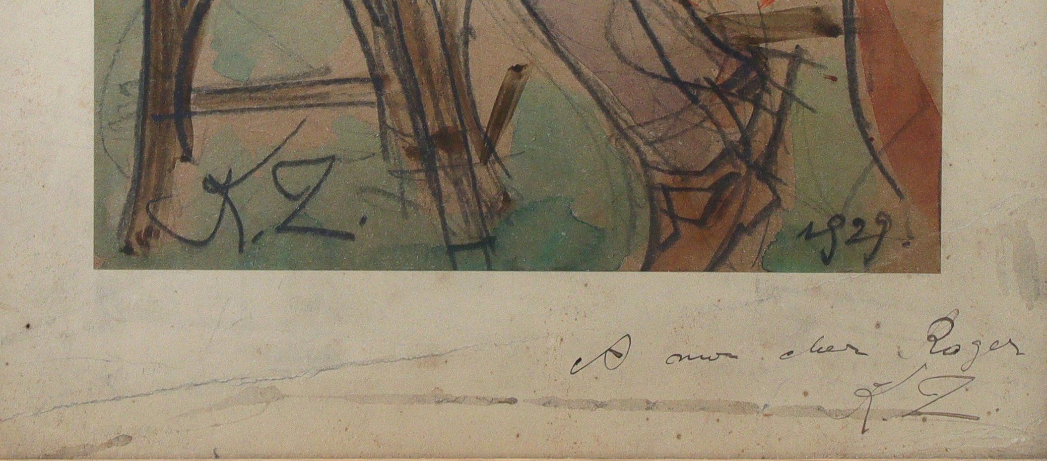 Papier monogrammé "KZ", daté "1929" et dédicacé "A mon cher Roger, KZ."