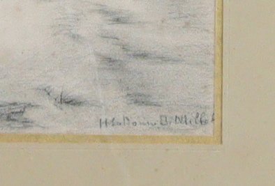 Réunion de dessins et portraits, certains encadrés, d'autres dans un carton: