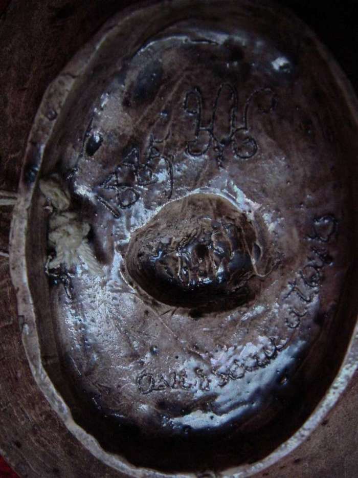 PLAT ovale, poterie vernissée. Avec grenouille, lézards, libellule, écrevisse, insectes, ange... Inscription latine "serpentes et volucres pennatae domino". Au centre est inscrit sur un rocher: "Madeleine".