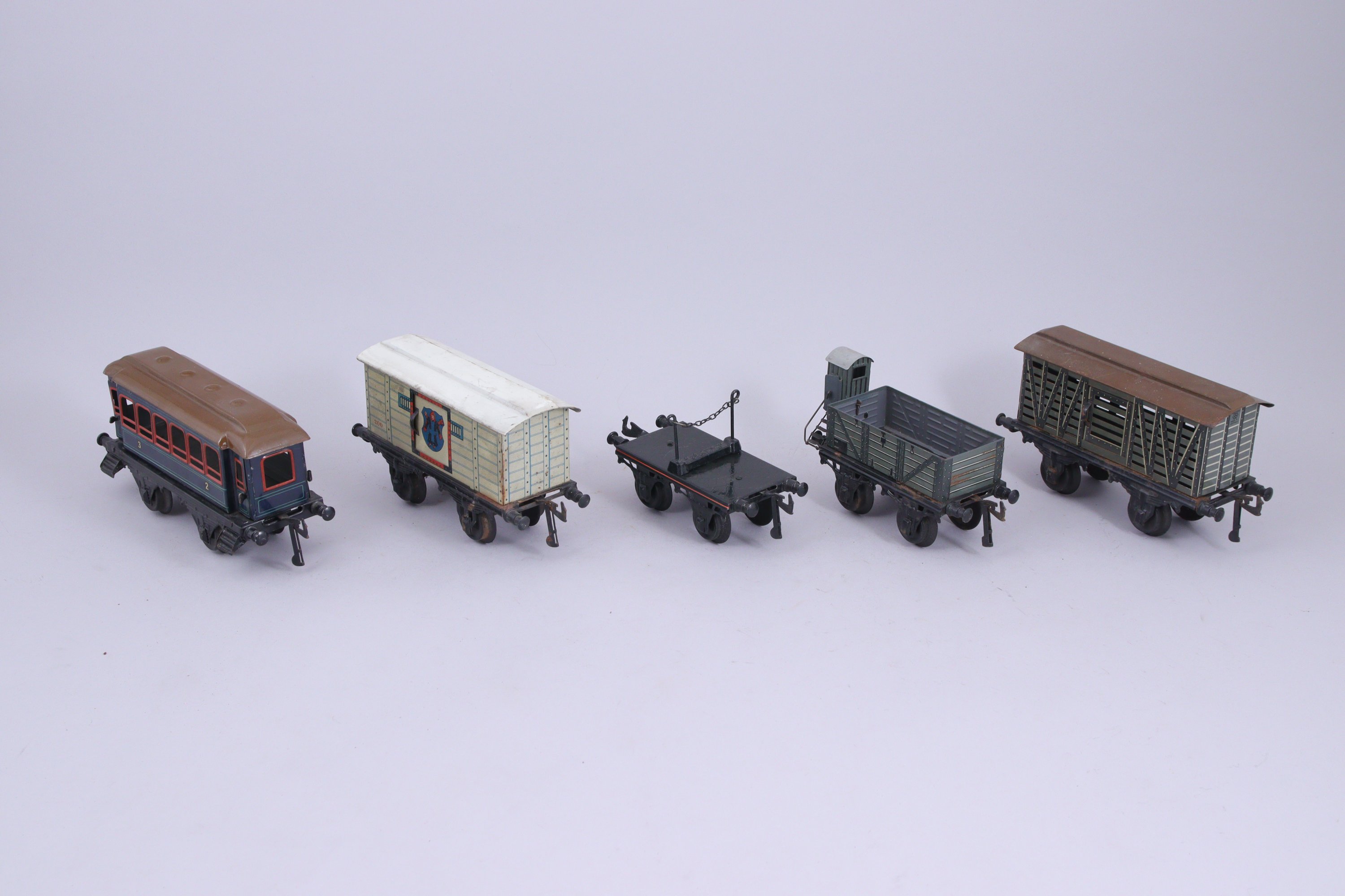 BING écartement 1, 18 wagons lithographiés, 16 à essieux et...