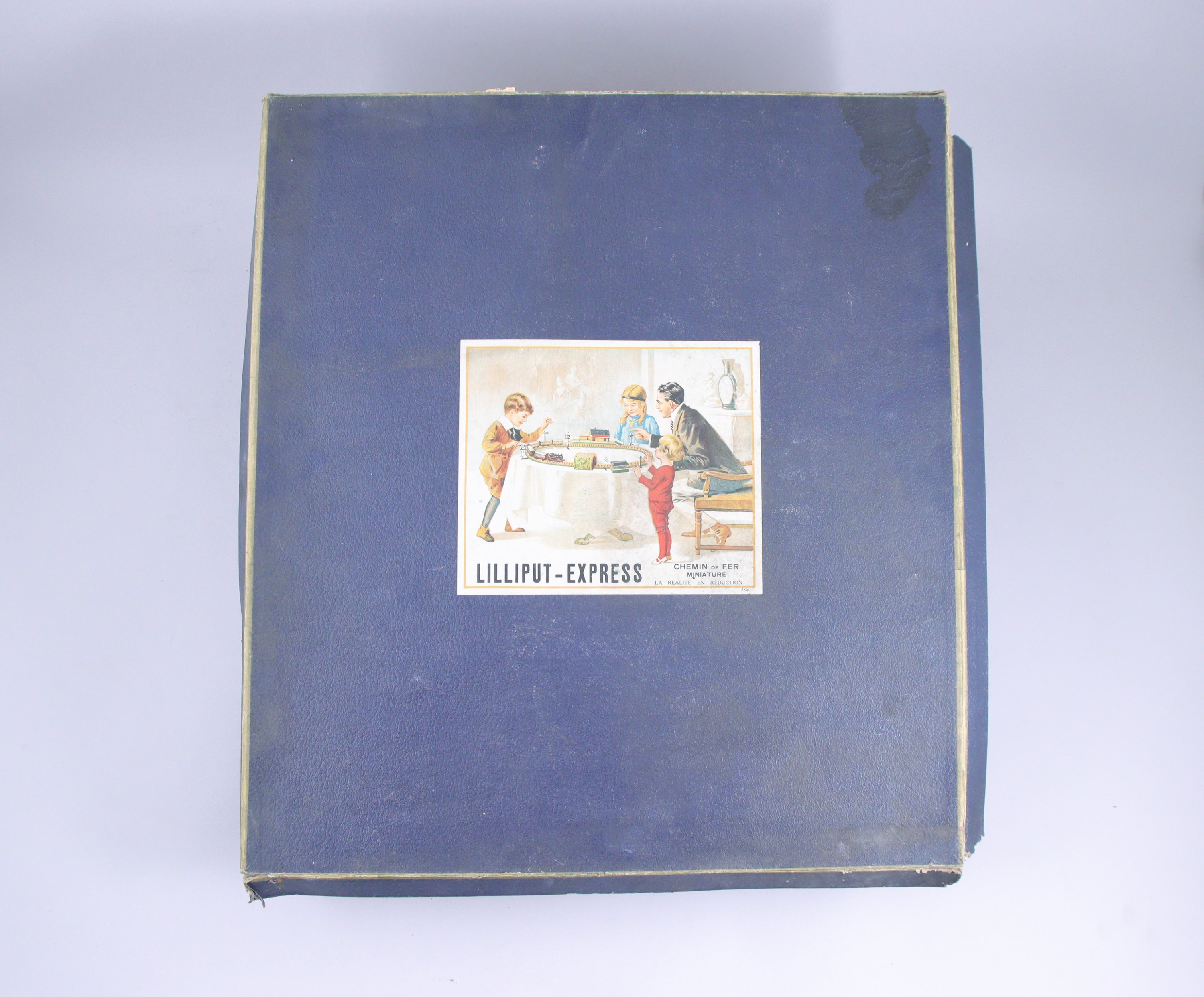 BING Lilliput-express. Deux grands coffrets (l'un avec couvercle) contenant différents éléments dont deux locotenders électriques type 120 noires à filets rouges, deux locotenders type 120 mécaniques noires à filets rouges, une locotender mécanique 120 verte GWR, trois wagons Shell, trois fourgons, trois hangars, deux quais, deux quais de marchandises, important réseaux de rails, nombreux poteaux téléphoniques et sémaphoriques.