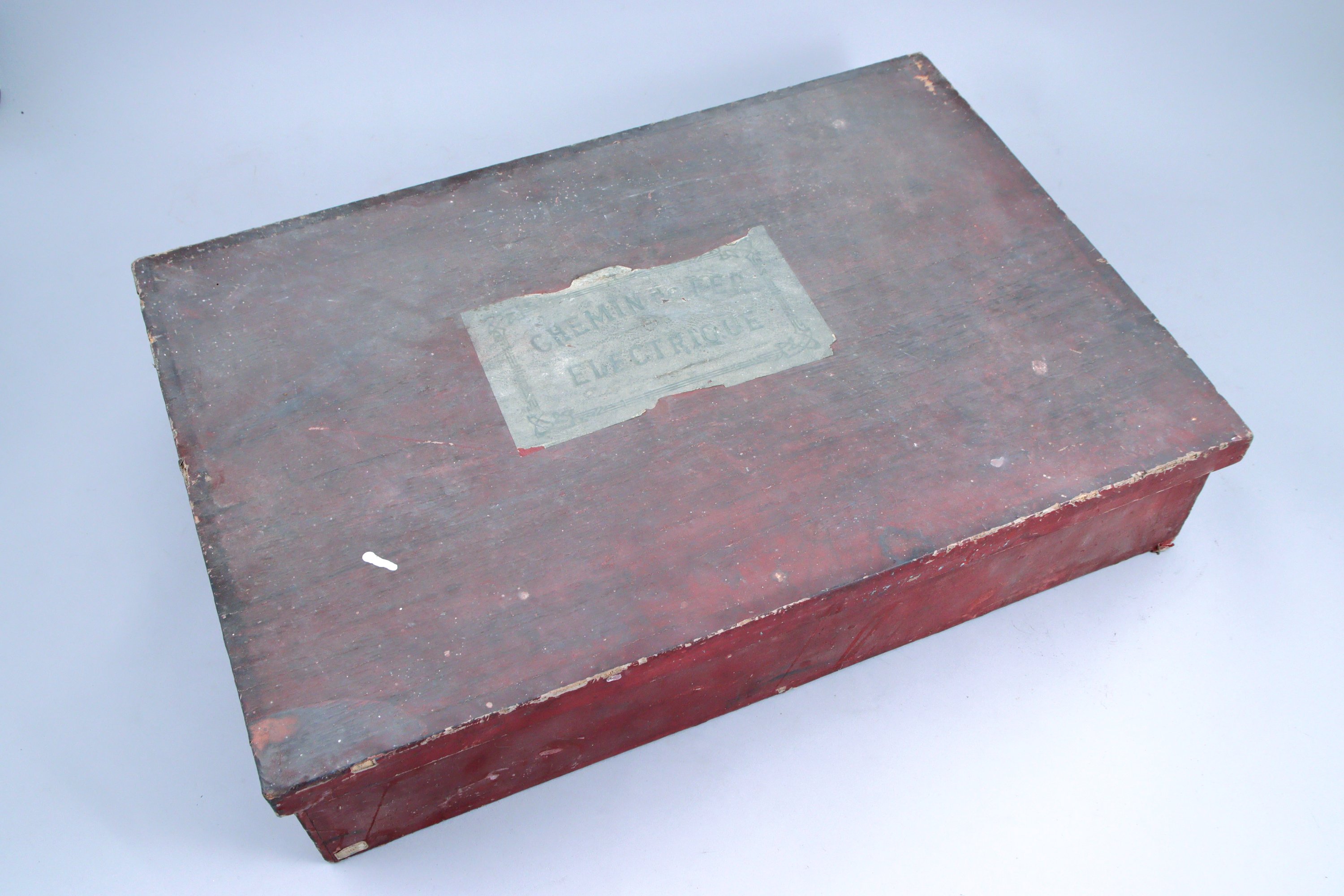 BING Coffret "chemins de fer électriques" en bois garni de papier bordeaux.