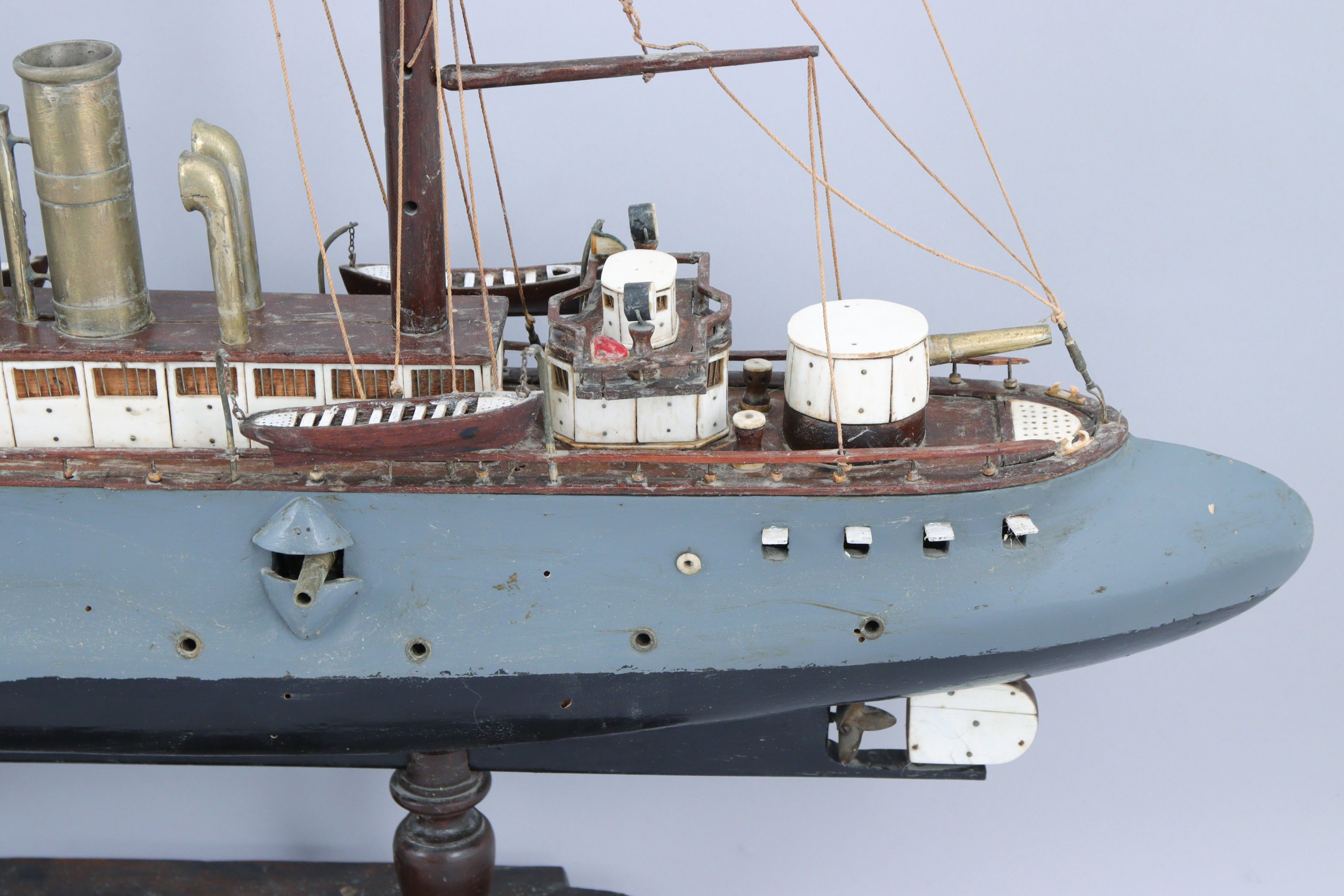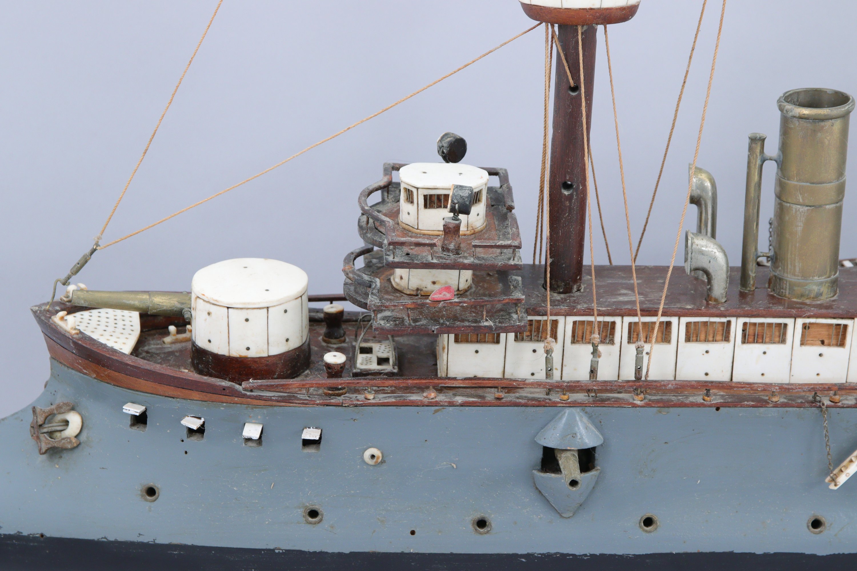 MAQUETTE de CUIRASSÉ en bois, métal et os.