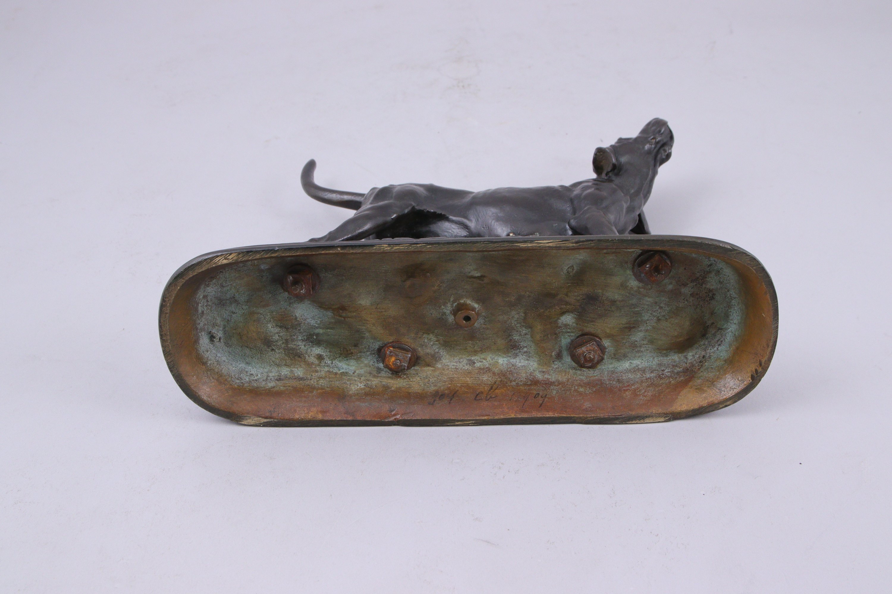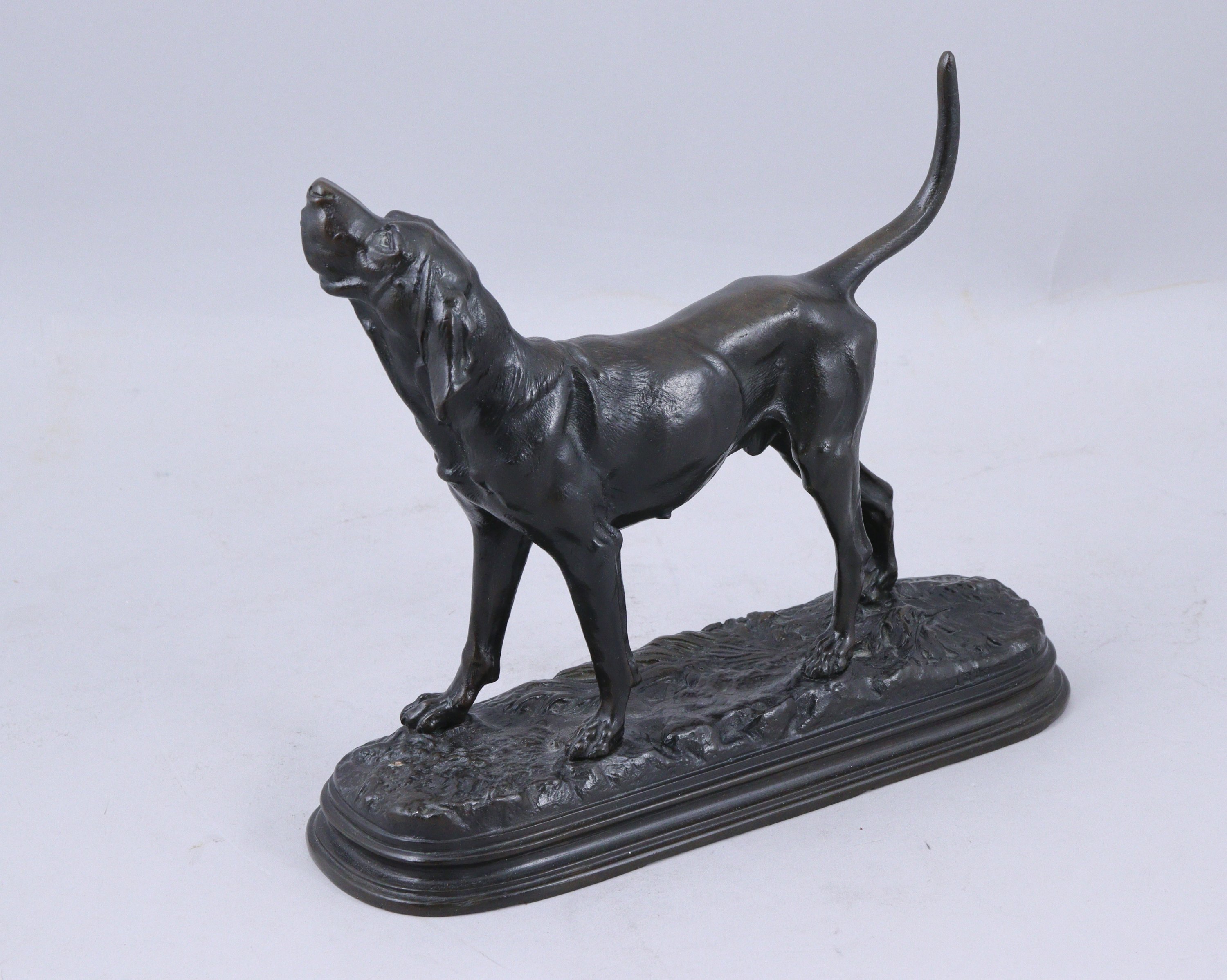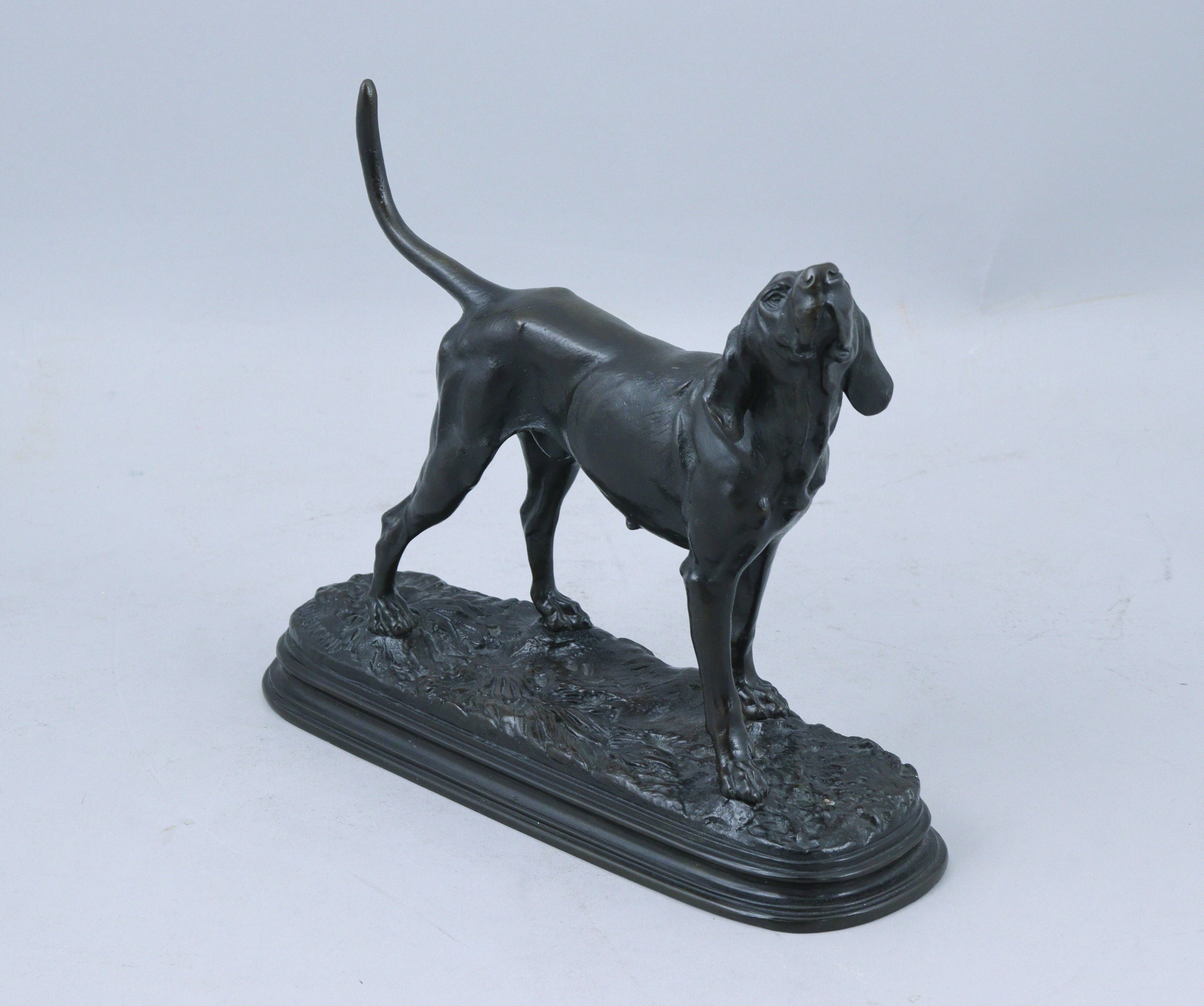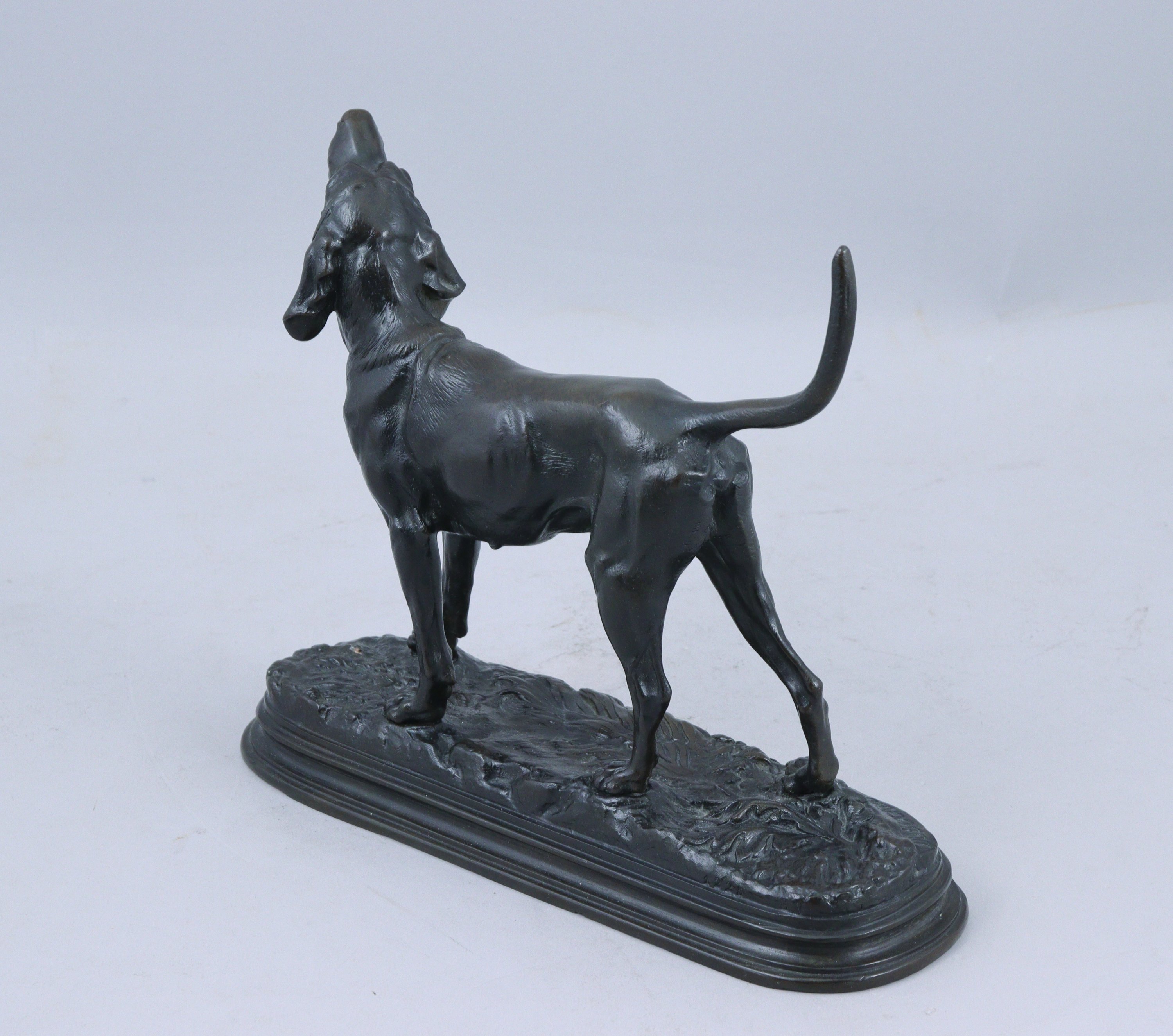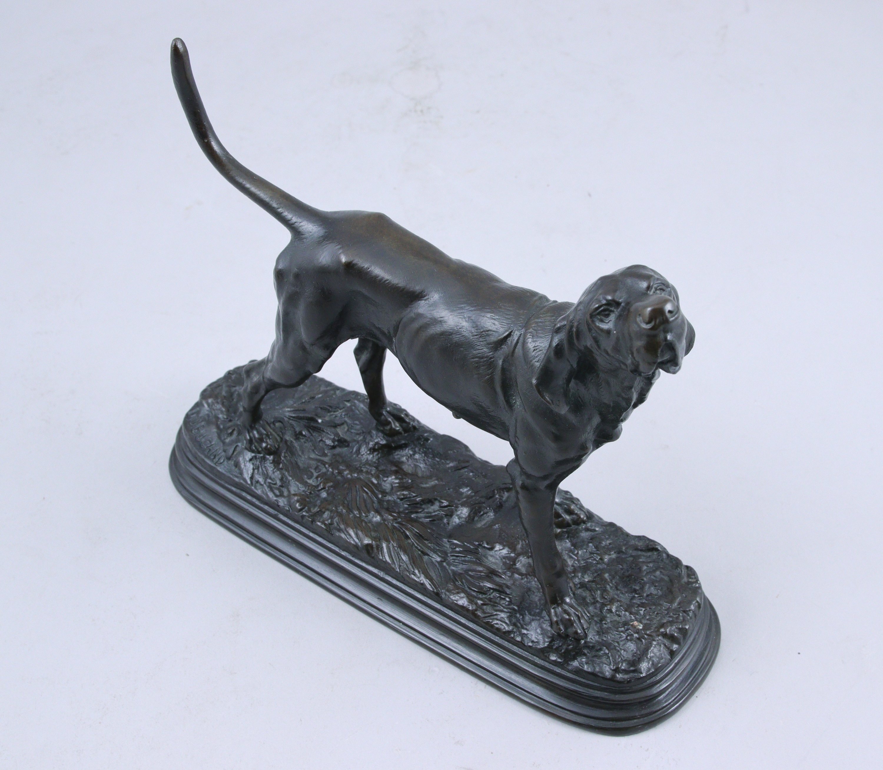 d'après Alfred DUBUCAND (1828-1894) Chien de chasse humantBronze patiné.Haut. 20,6,...