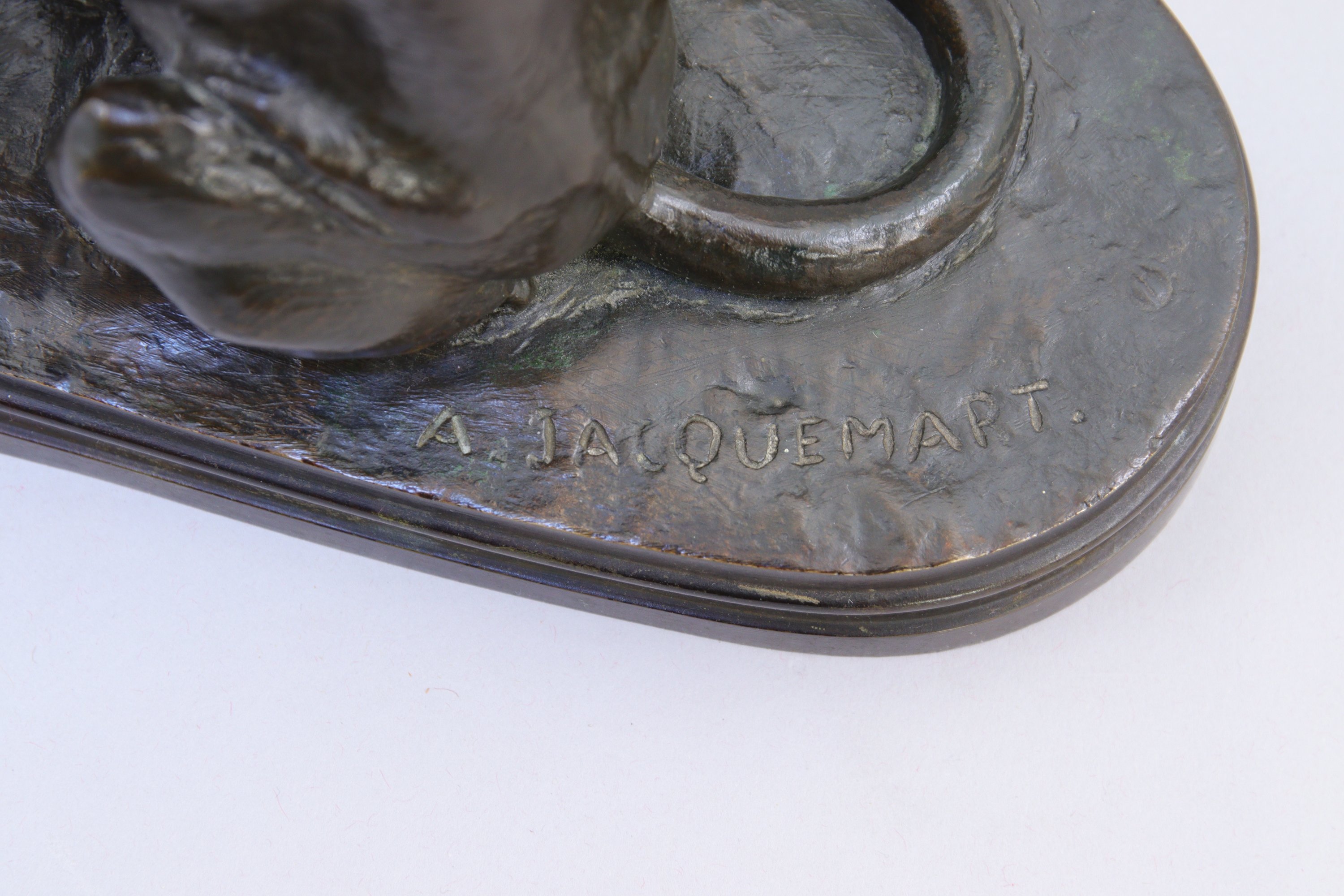 Bronze à patine brune. Signé sur la terrasse "A. JACQUEMART" et cachet du fondeur "A. Delafontaine".