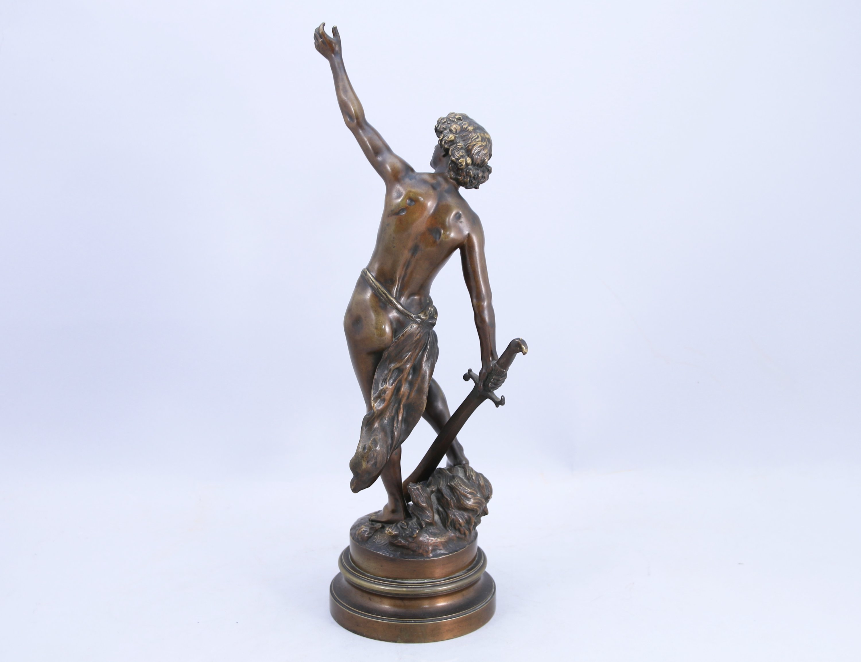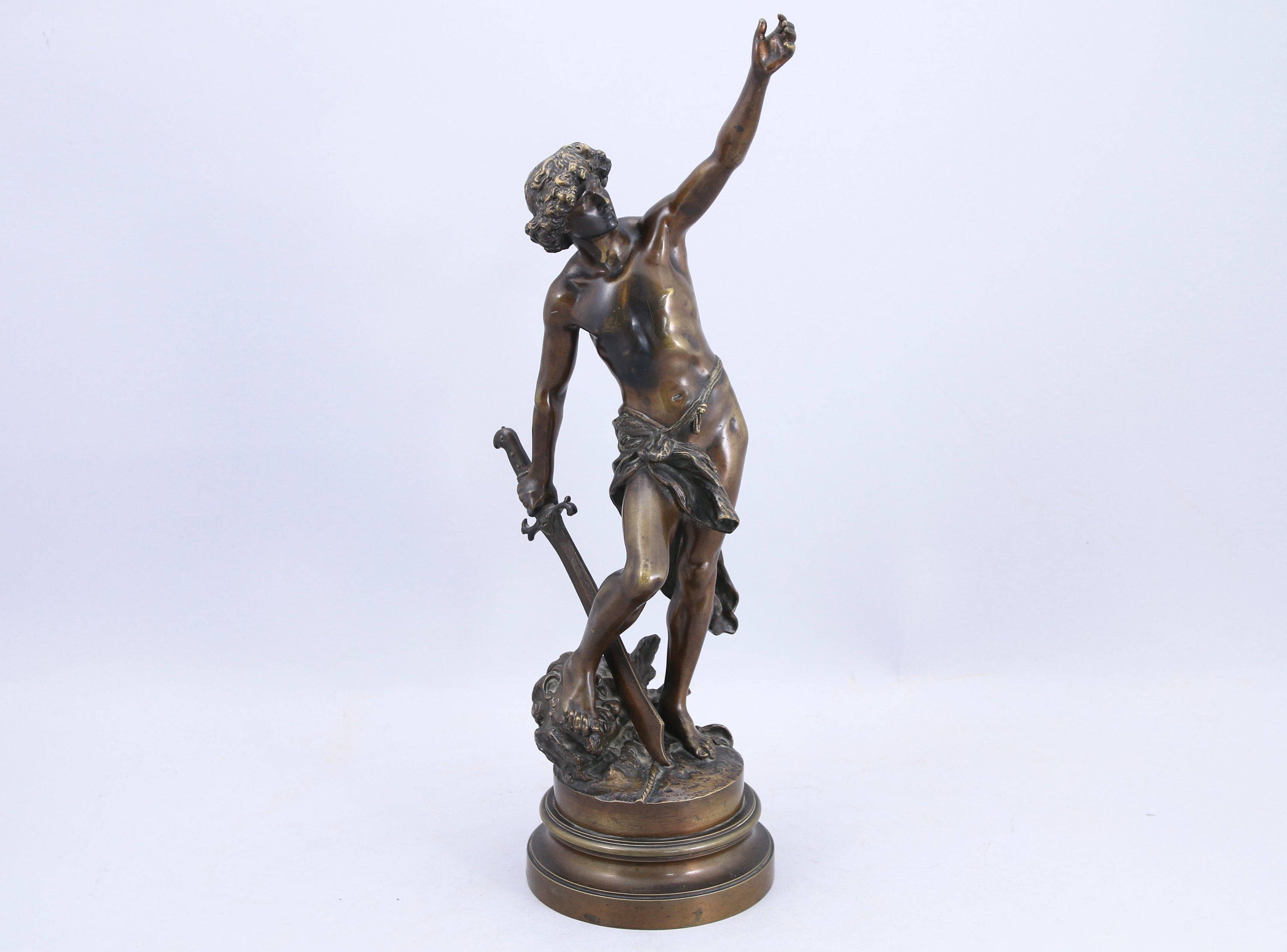 Louis GOSSIN (1846-1928) David et GoliathBronze. Signé.Haut. 48 cm.
