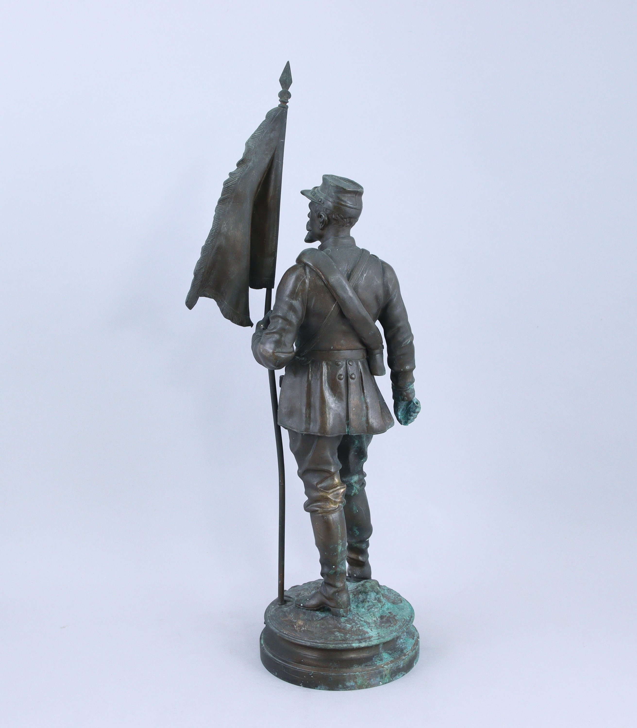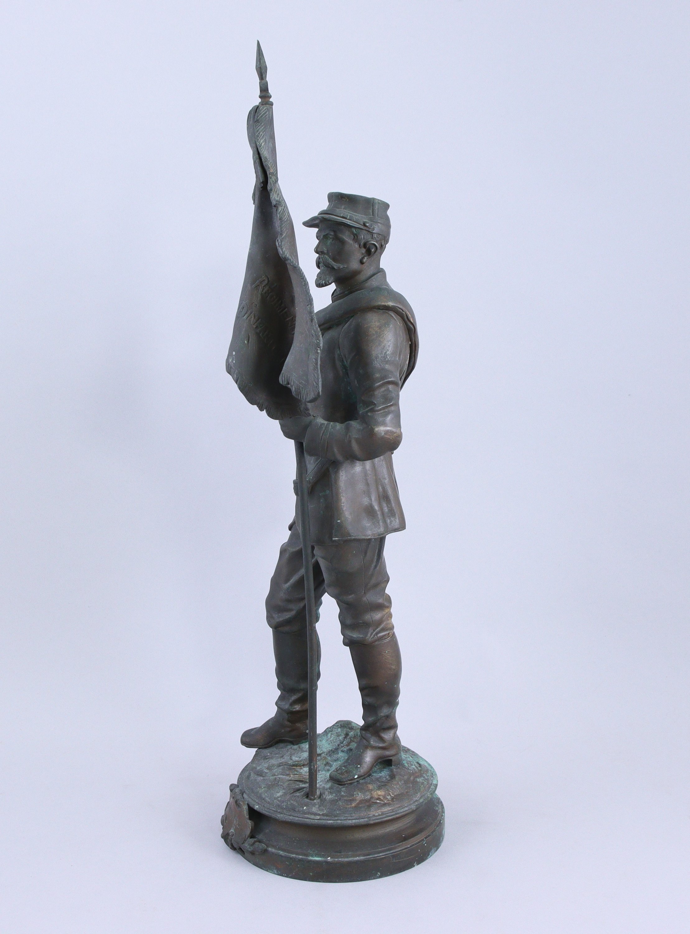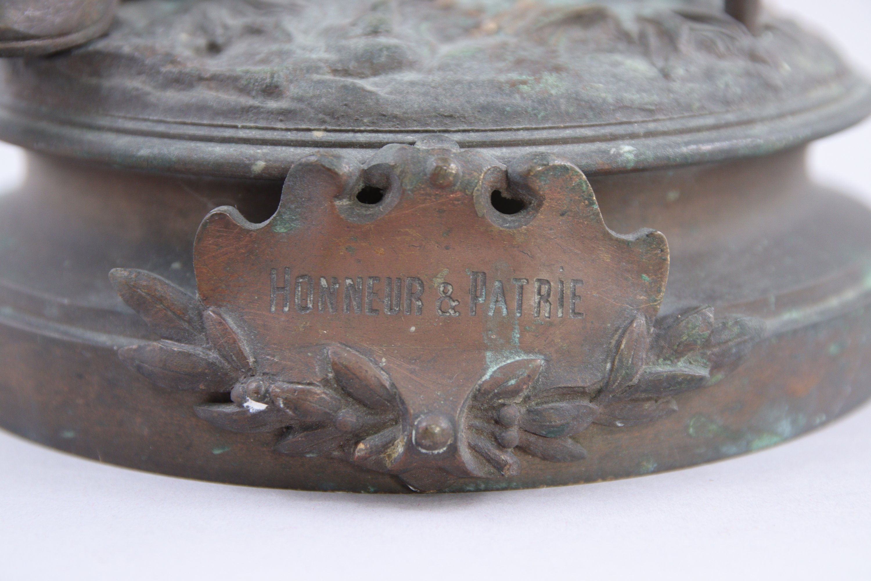Bronze patiné. Signé et orné sur la terrasse d'un écusson "Honneur & Patrie".